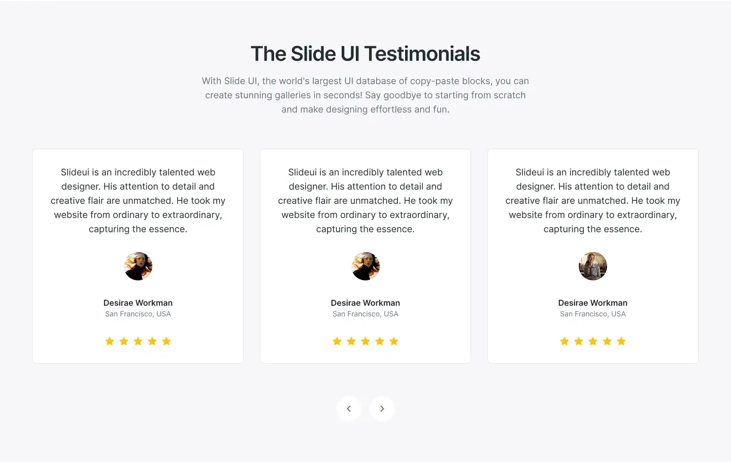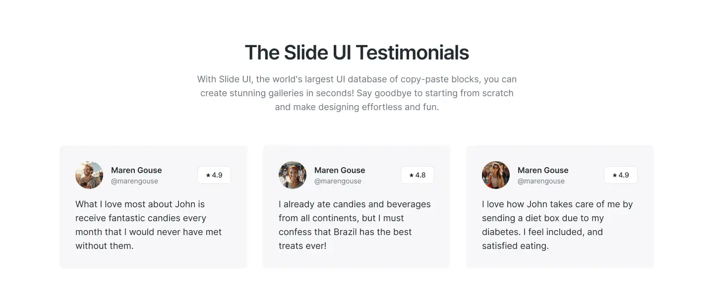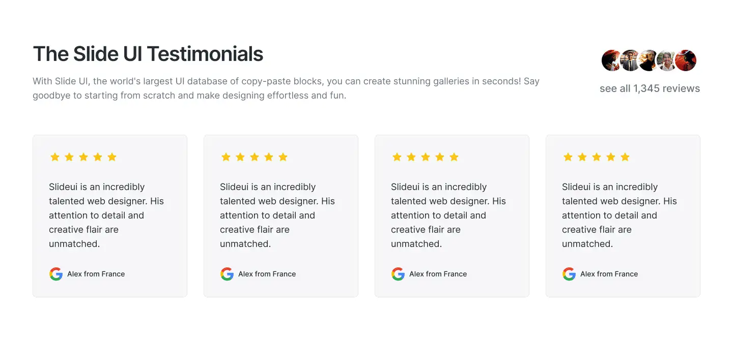 Trust-building review blocks that show user feedback, star ratings, or real testimonials with proof elements.