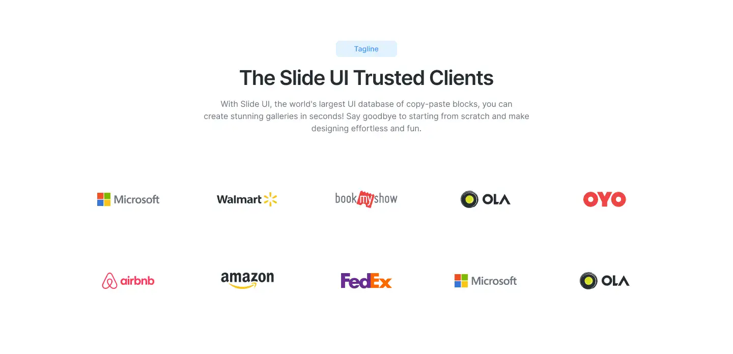 Visual blocks to show awards, press features, partner logos, and verification badges.