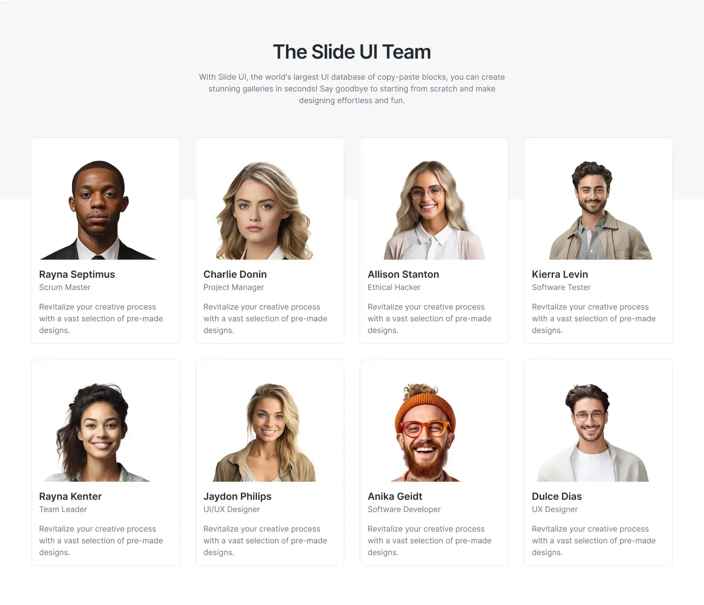 Lightweight sections for storytelling, intros, or visual breaks. Ideal for portfolios, agencies, and SaaS.
