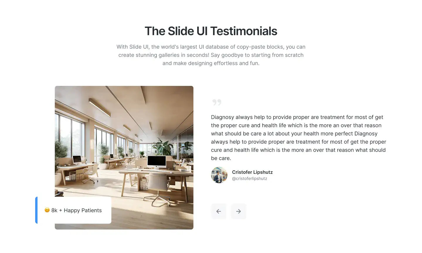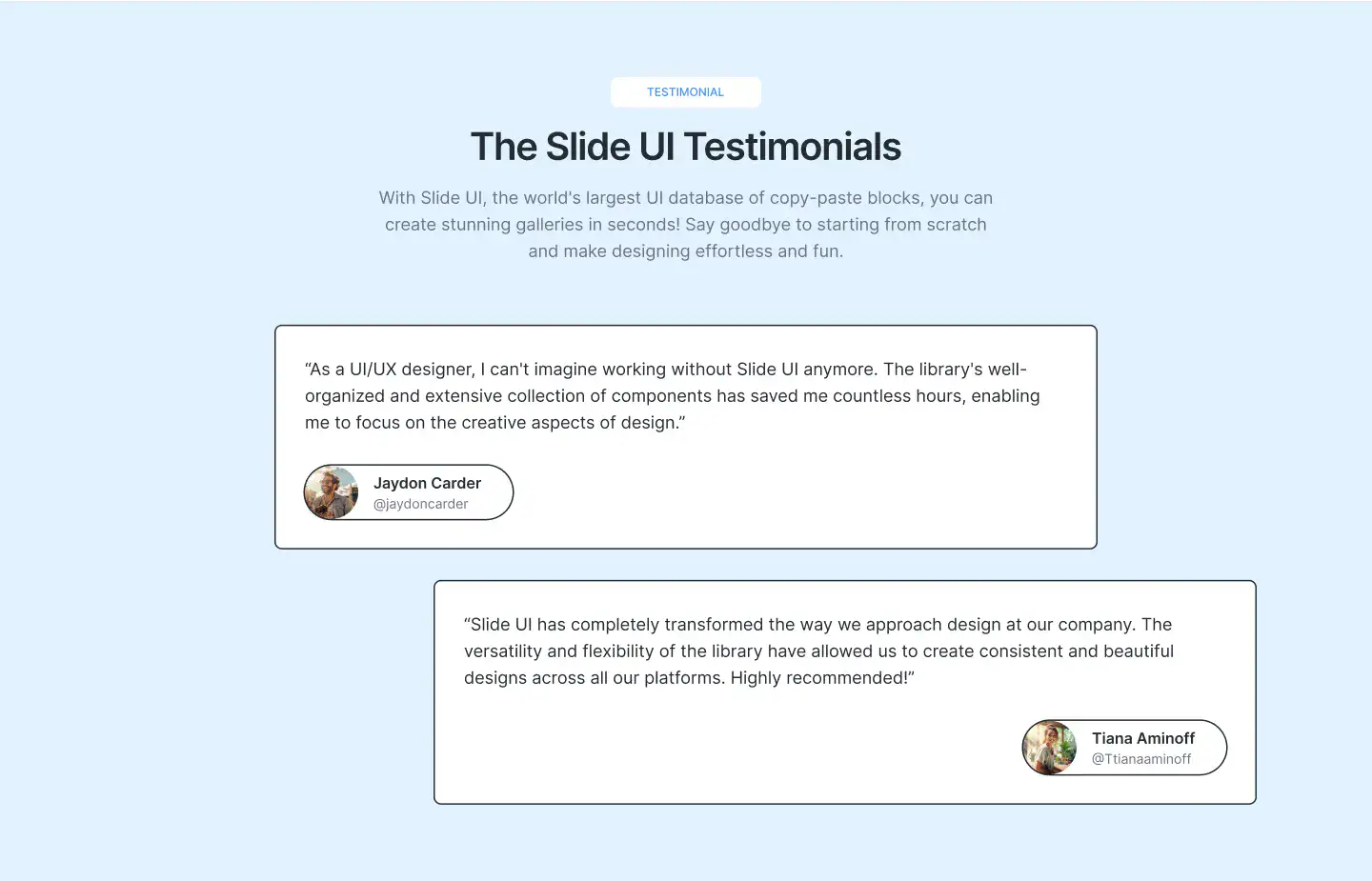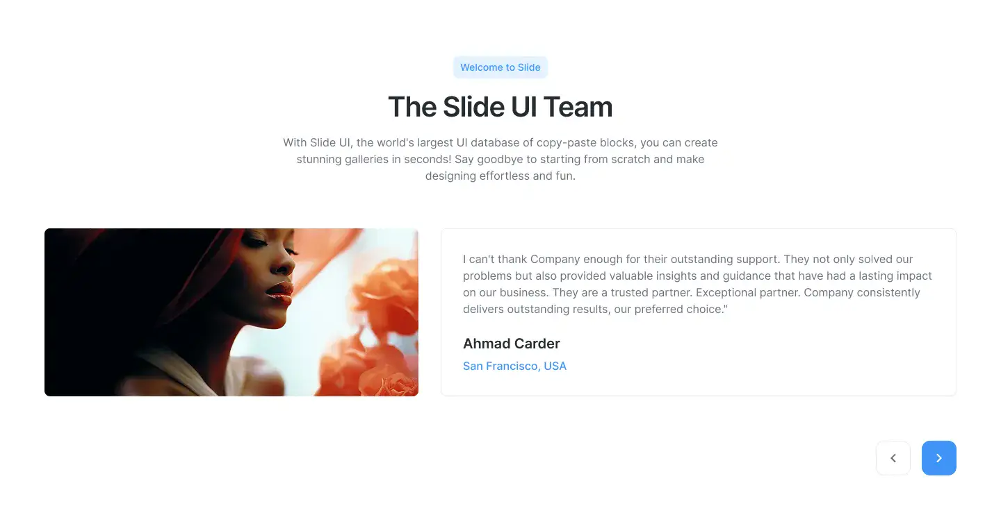 High-trust testimonial sections with avatars, logos, quotes, or carousels. Designed to increase credibility and conversions.