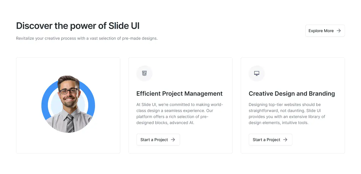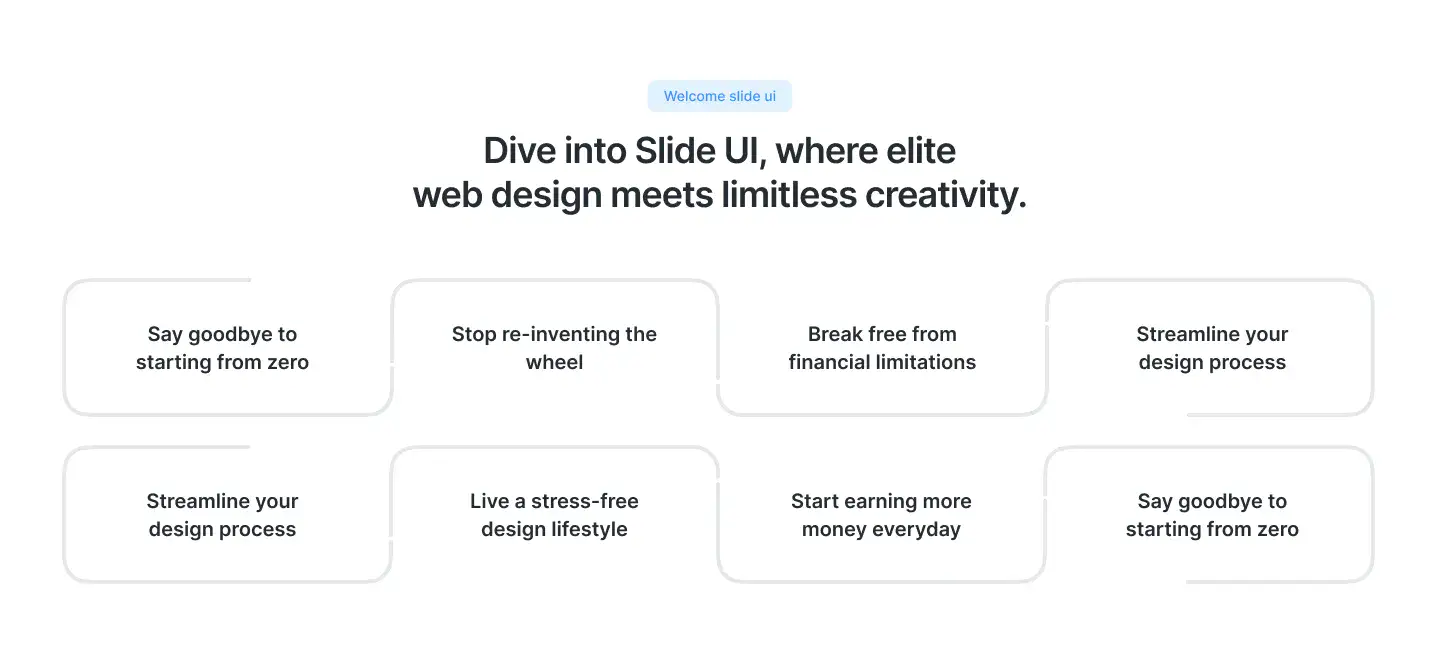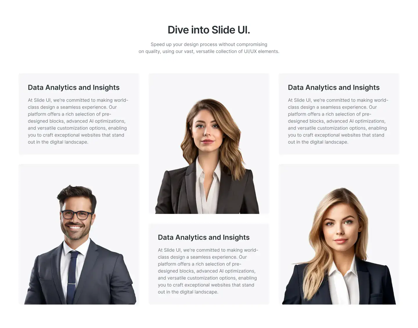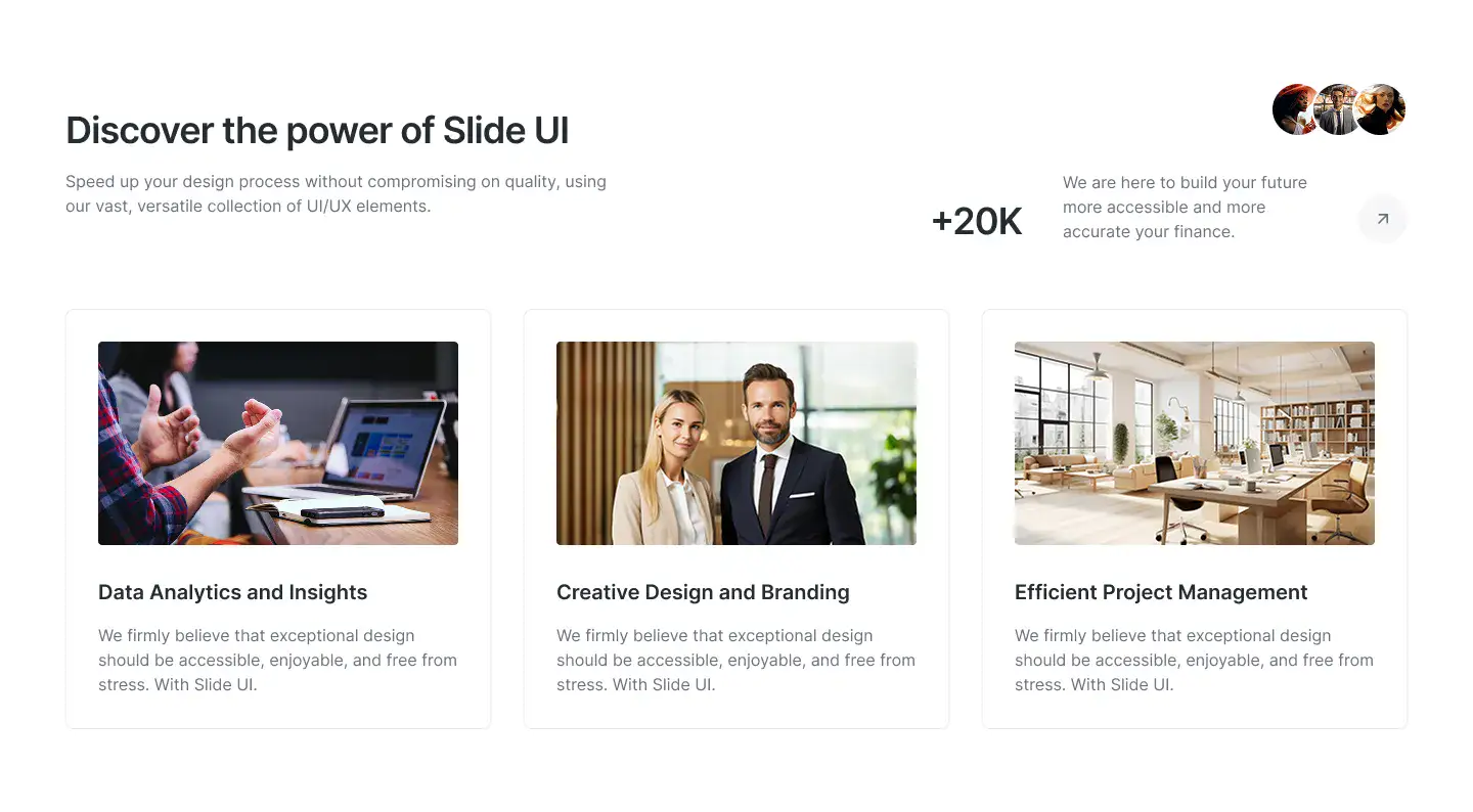 Lightweight sections for storytelling, intros, or visual breaks. Ideal for portfolios, agencies, and SaaS.