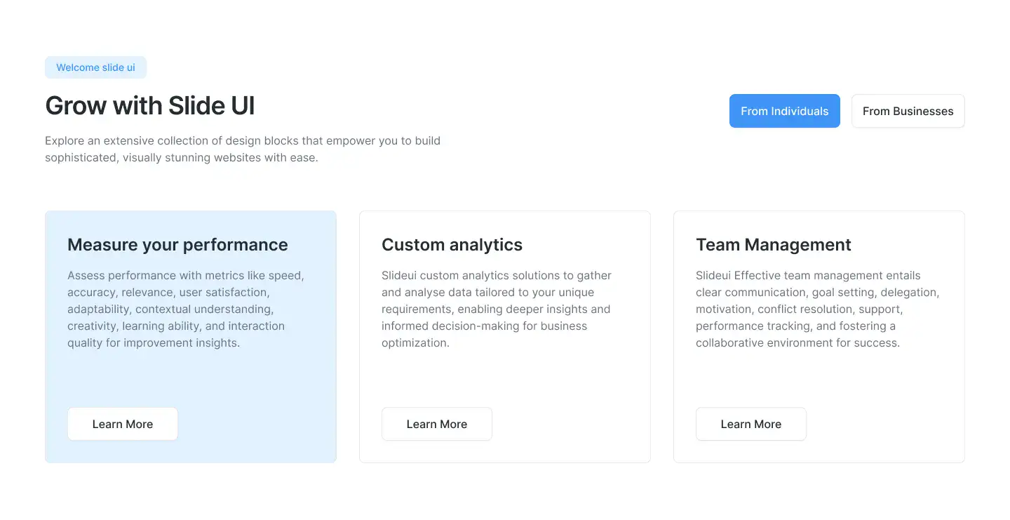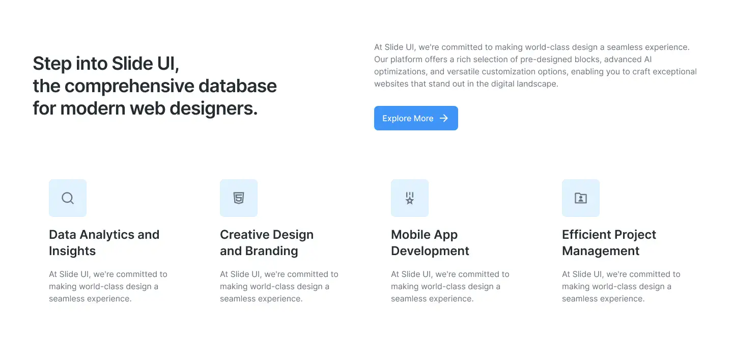 I love how big the library is. If I need SaaS layouts, e-commerce, landing pages — it’s all there. I don’t have to hunt or start from scratch anymore. Projects that used to take days now take hours.