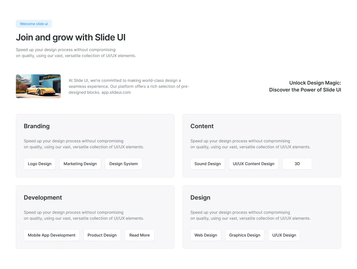 Organise your blog or knowledge base visually with clean, responsive category cards or grids.
