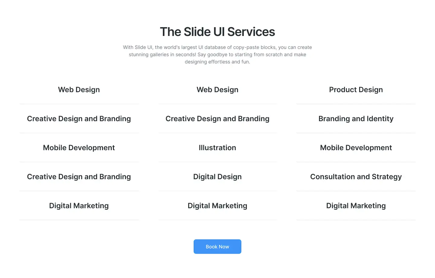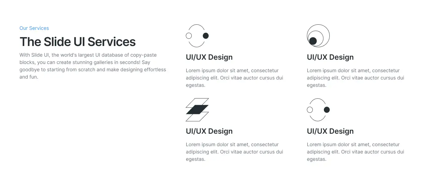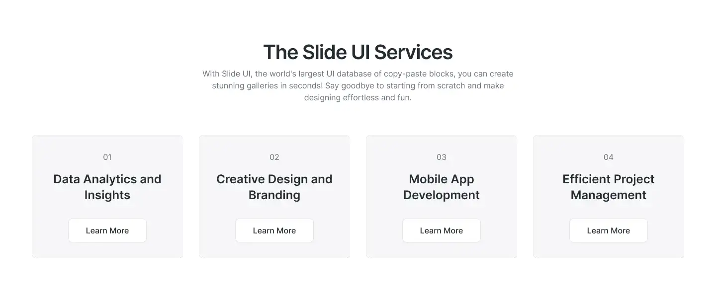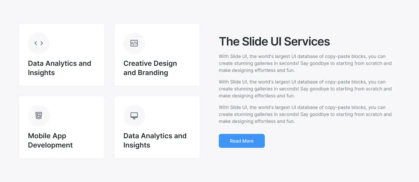 Grid or column-based layouts to highlight your best product features — fast, skimmable, and easy to reuse.