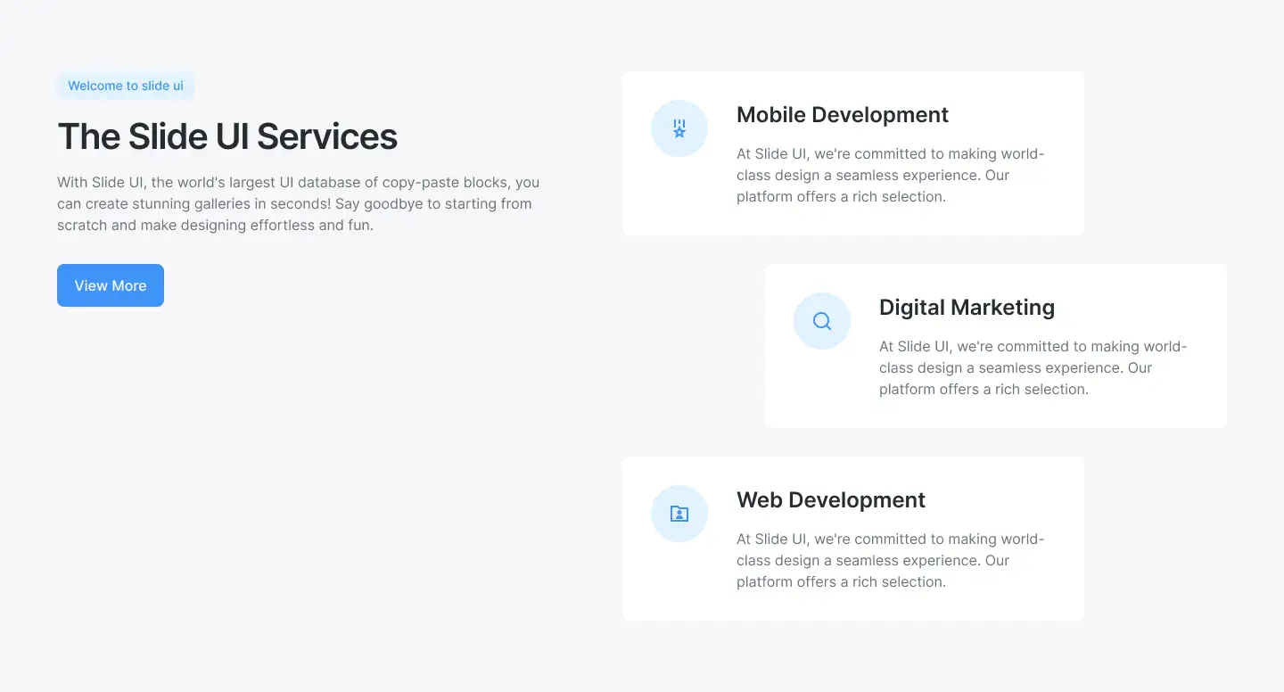 View Benefit / Statistic blocksPerfect for agencies, consultants, and SaaS tools to clearly explain services offered, with icon, card, or list formats.