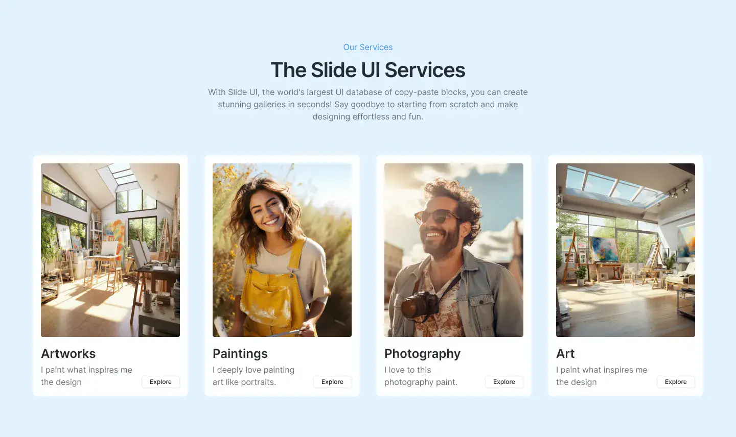 View Hero blocksShowcase processes, features, or onboarding in a clean 3–4 step layout. These are perfect for explaining complex ideas simply.