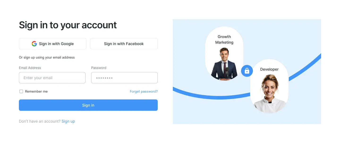 Authentication blocks built with conversion best practices. Clean, secure, and mobile-optimised.