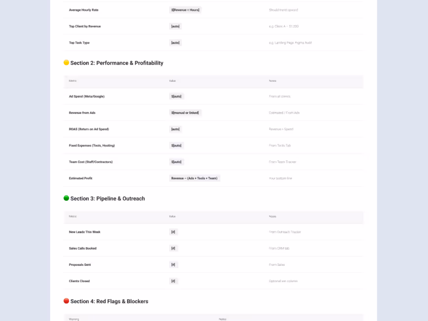 Turn business operations into clarity. Proposals, templates, SOPs, client docs & pricing systems - all in one. Built to scale your freelance or agency business.