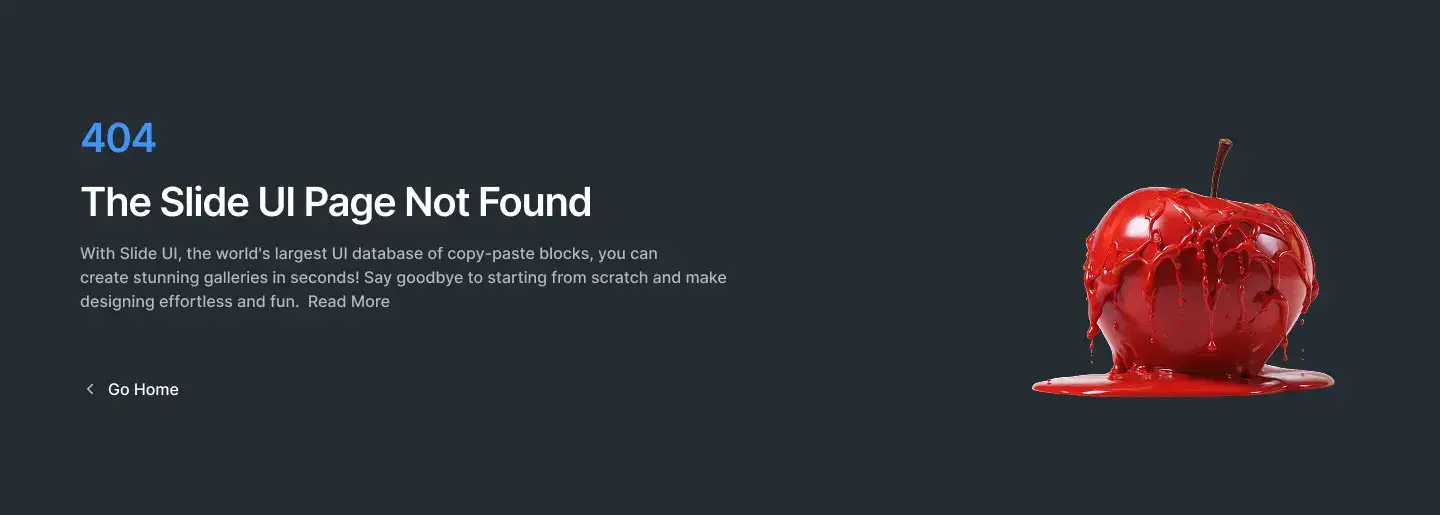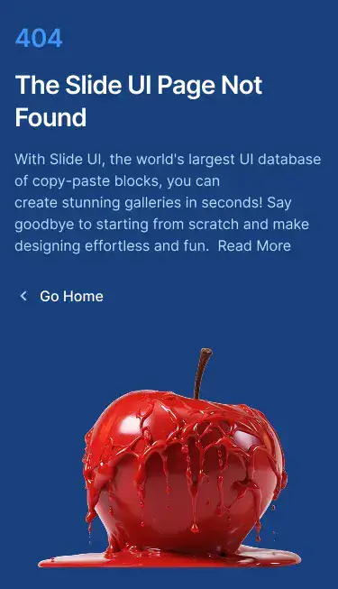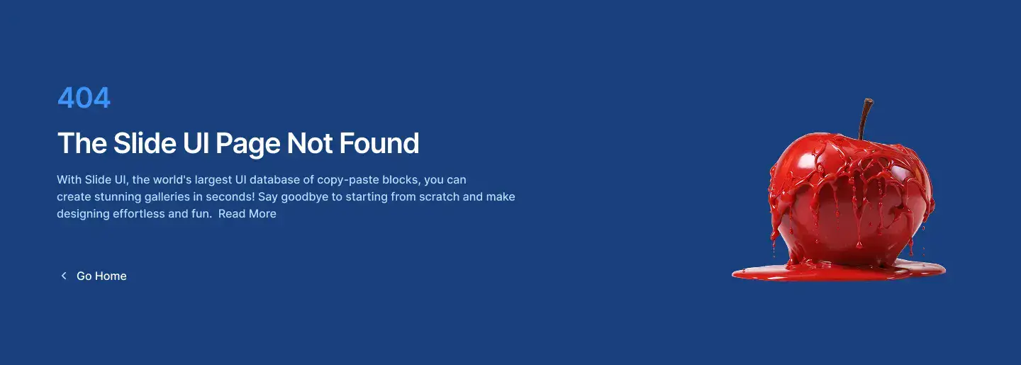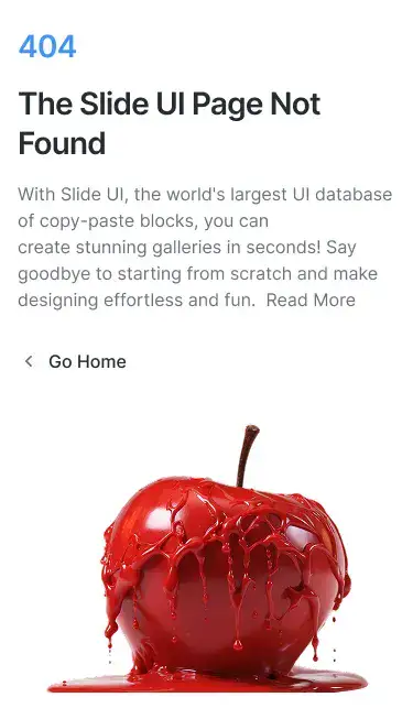 Minimal, branded 404 blocks that guide users back on track. Includes illustrations or CTAs.