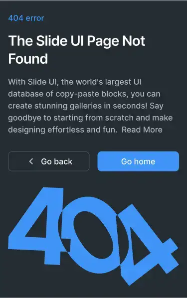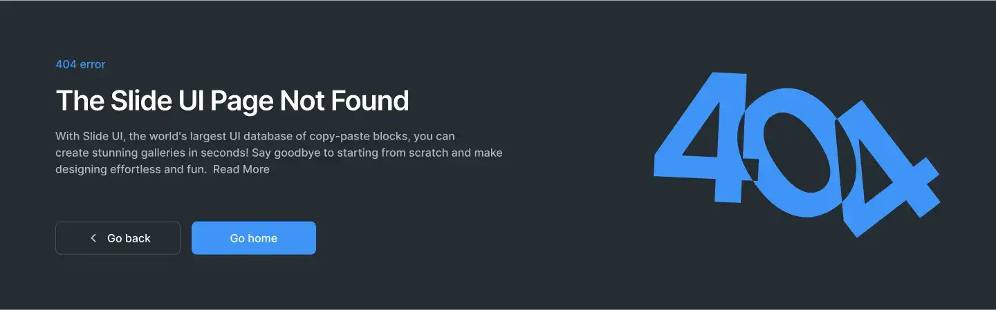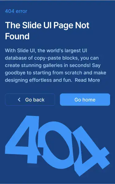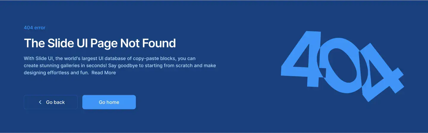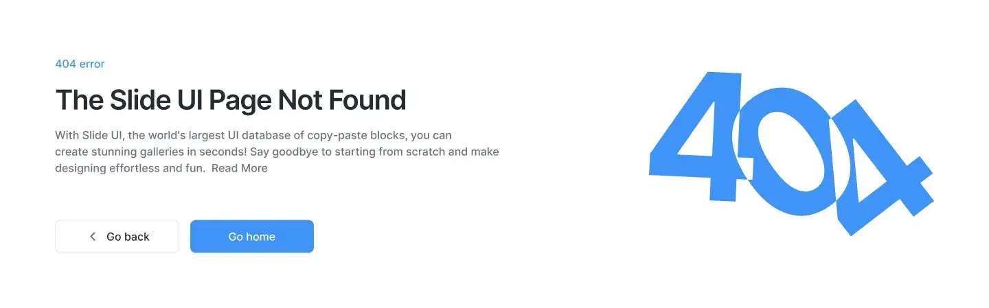 Minimal, branded 404 blocks that guide users back on track. Includes illustrations or CTAs.