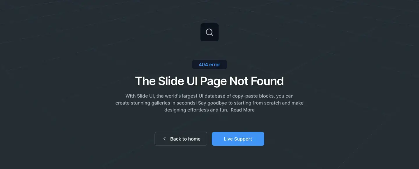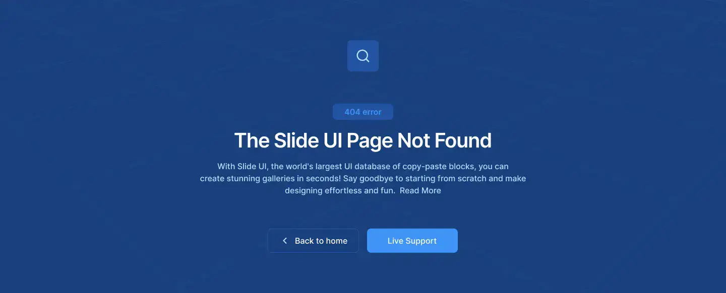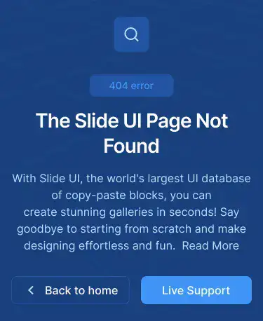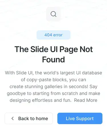 Minimal, branded 404 blocks that guide users back on track. Includes illustrations or CTAs.