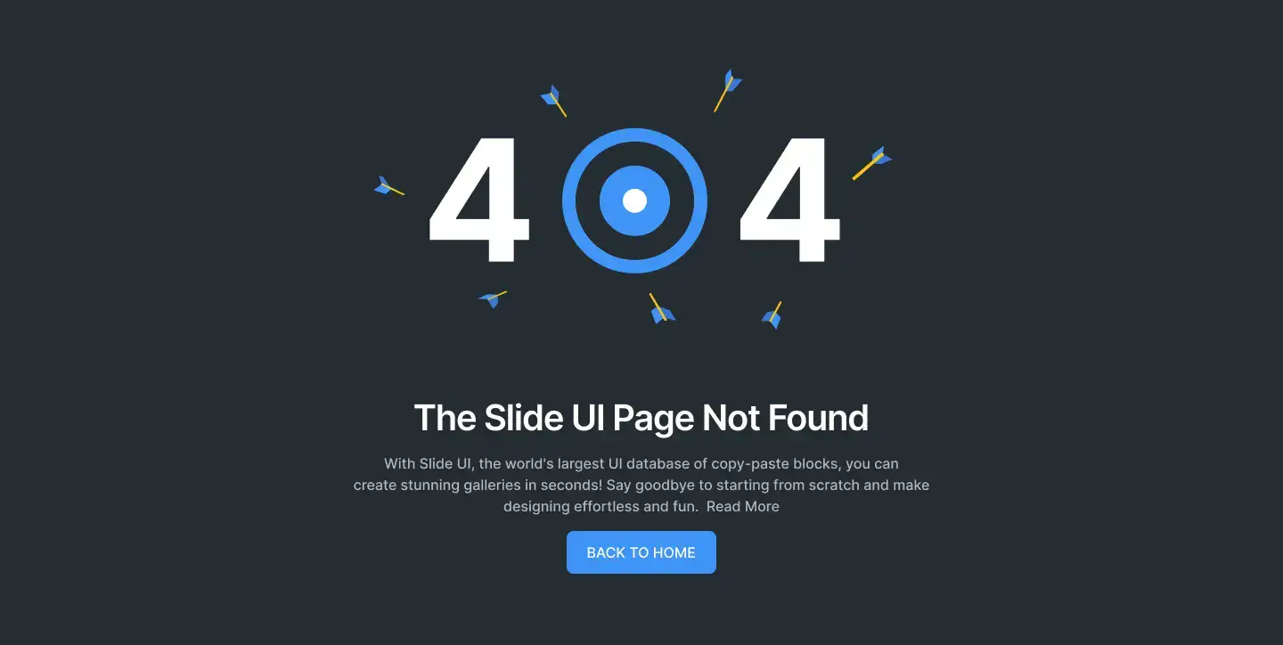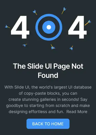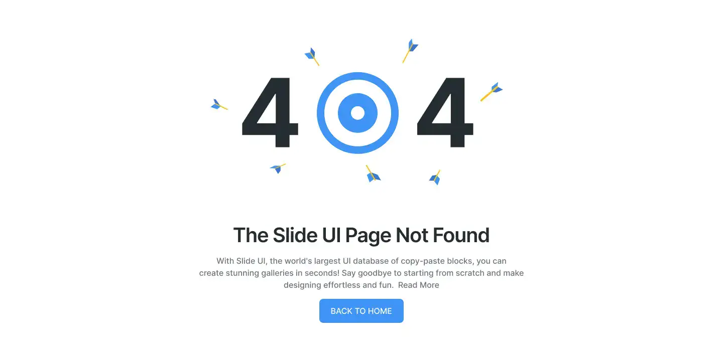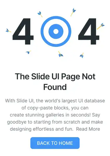 Minimal, branded 404 blocks that guide users back on track. Includes illustrations or CTAs.