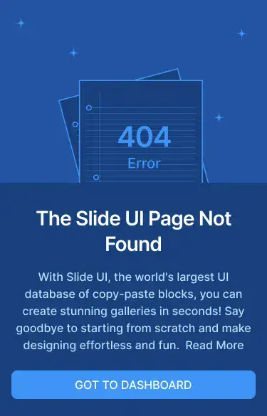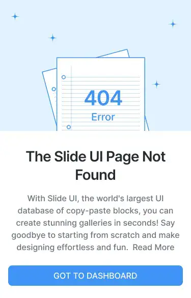 Minimal, branded 404 blocks that guide users back on track. Includes illustrations or CTAs.