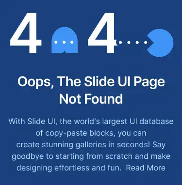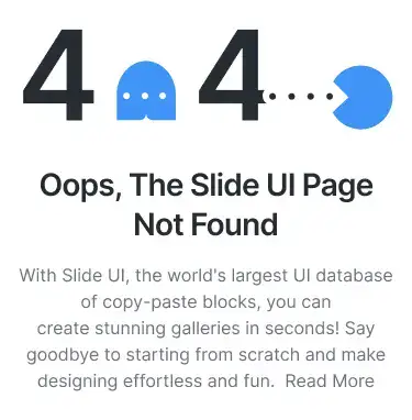 Minimal, branded 404 blocks that guide users back on track. Includes illustrations or CTAs.