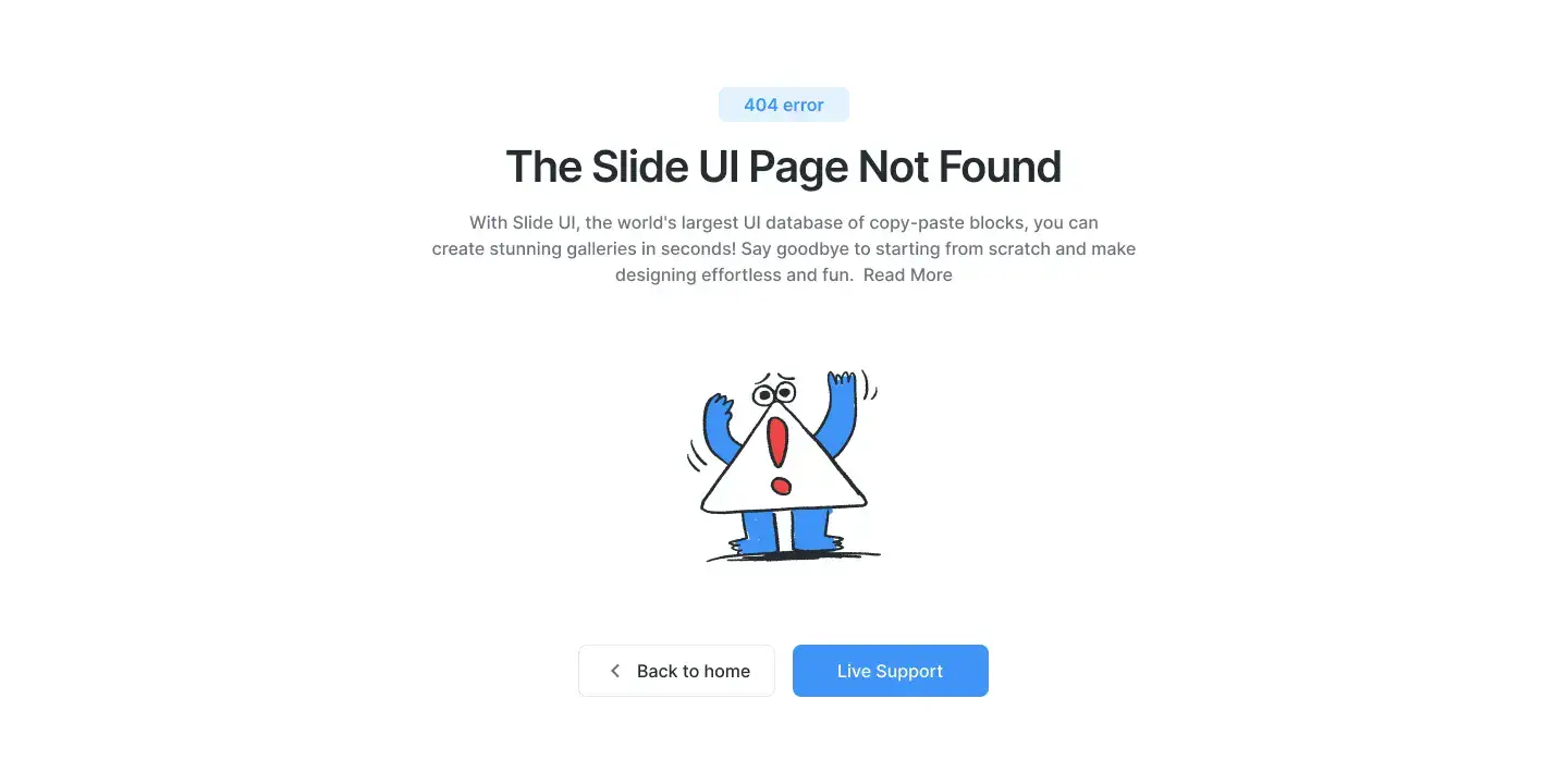 Minimal, branded 404 blocks that guide users back on track. Includes illustrations or CTAs.