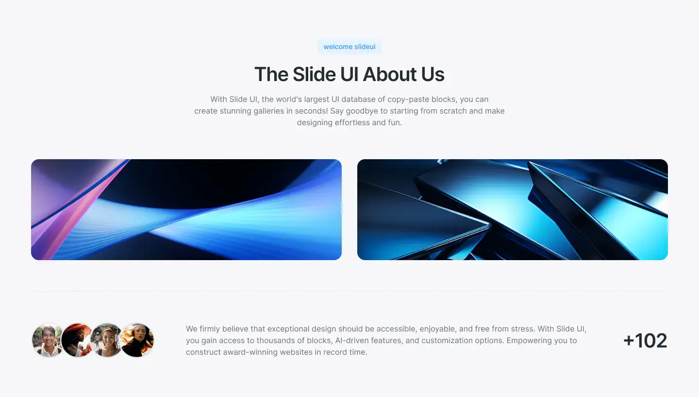 Lightweight sections for storytelling, intros, or visual breaks. Ideal for portfolios, agencies, and SaaS.