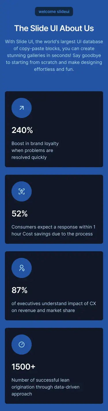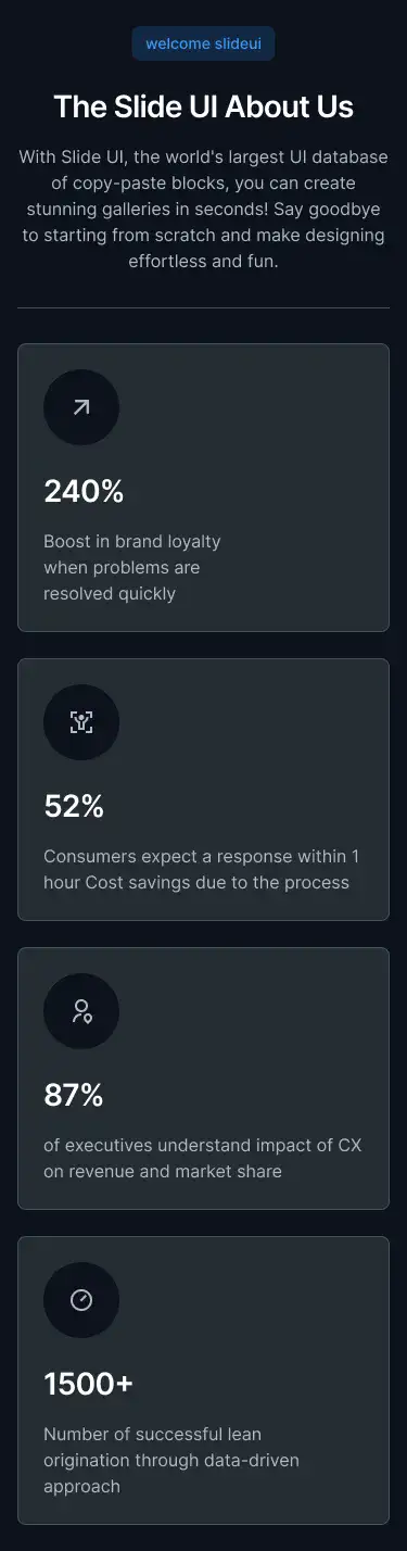 View Benefit / Statistic blocksPerfect for agencies, consultants, and SaaS tools to clearly explain services offered, with icon, card, or list formats.