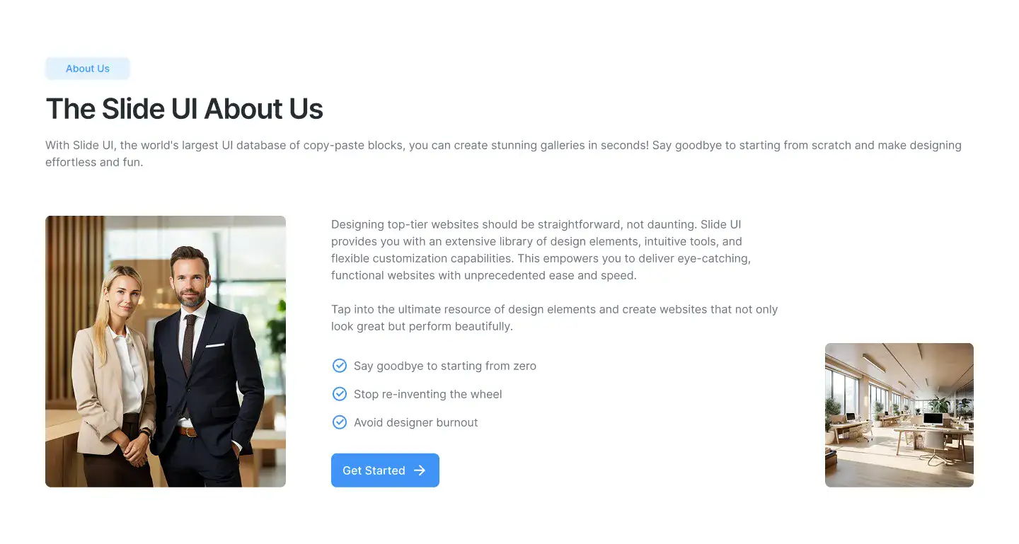 Add story, mission, and credibility to your brand with timeline, image-text, or culture-based layouts.