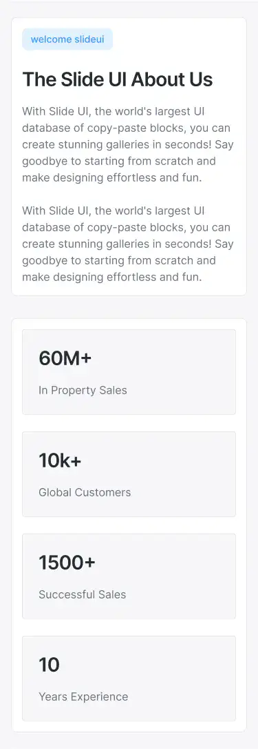 Lightweight sections for storytelling, intros, or visual breaks. Ideal for portfolios, agencies, and SaaS.