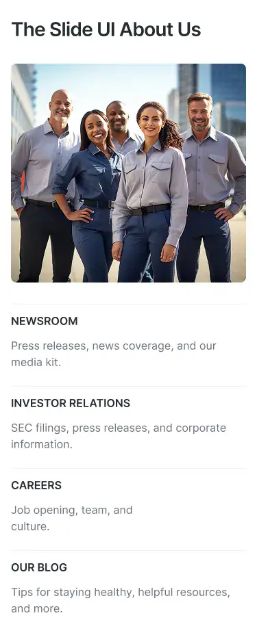 Add story, mission, and credibility to your brand with timeline, image-text, or culture-based layouts.