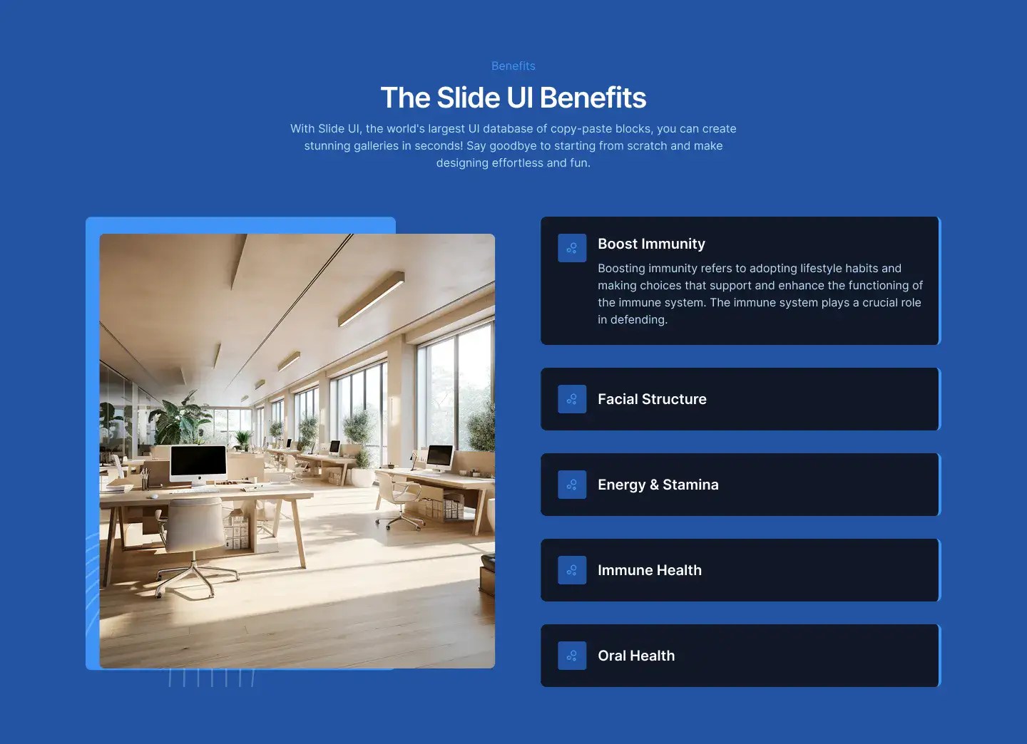 View Benefit / Statistic blocksPerfect for agencies, consultants, and SaaS tools to clearly explain services offered, with icon, card, or list formats.