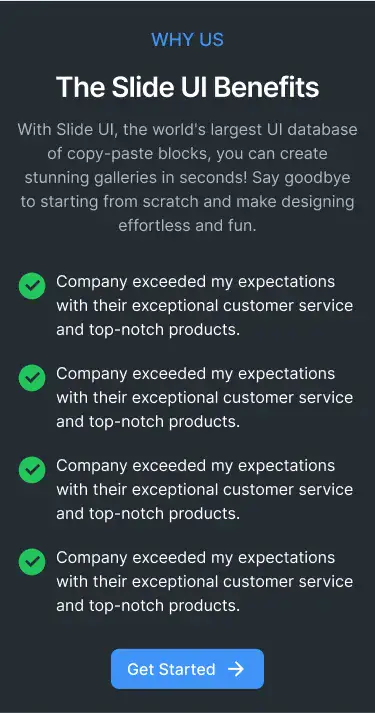 Grid or column-based layouts to highlight your best product features — fast, skimmable, and easy to reuse.