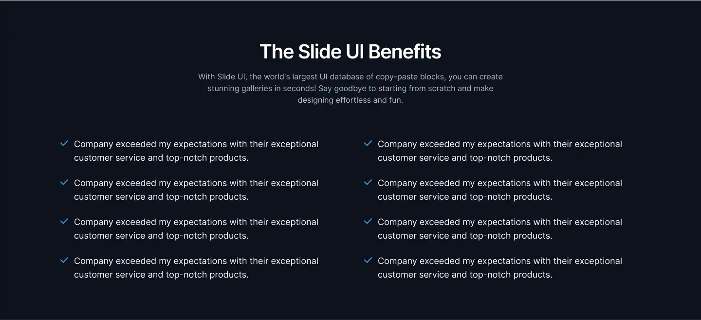 Grid or column-based layouts to highlight your best product features — fast, skimmable, and easy to reuse.