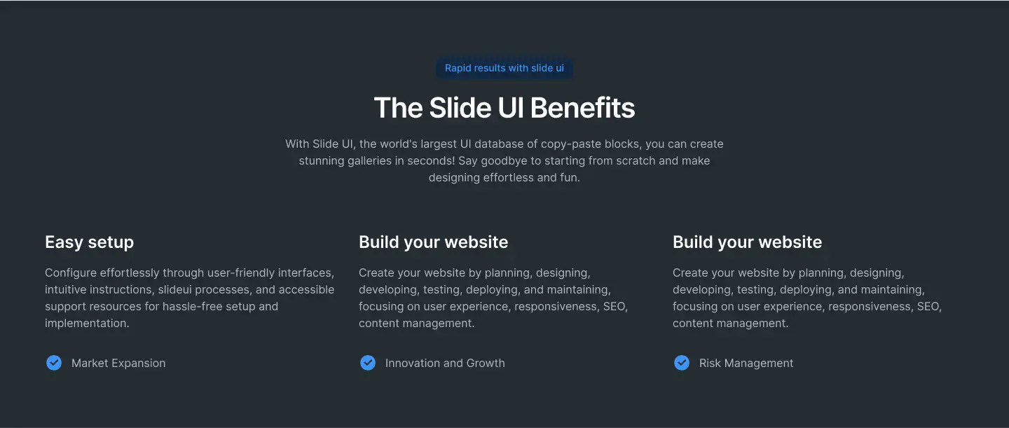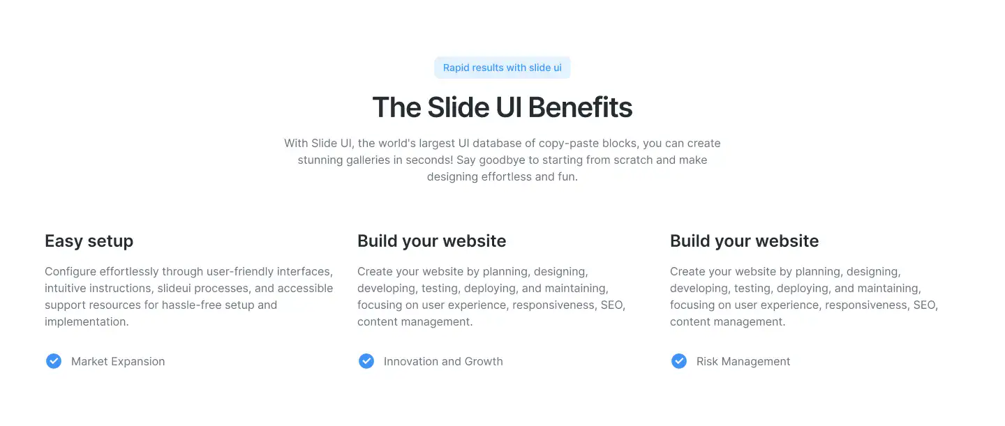 Grid or column-based layouts to highlight your best product features — fast, skimmable, and easy to reuse.