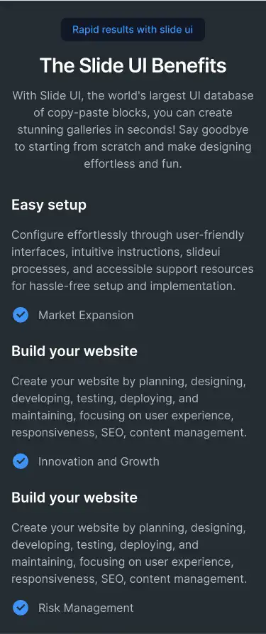 View Benefit / Statistic blocksPerfect for agencies, consultants, and SaaS tools to clearly explain services offered, with icon, card, or list formats.