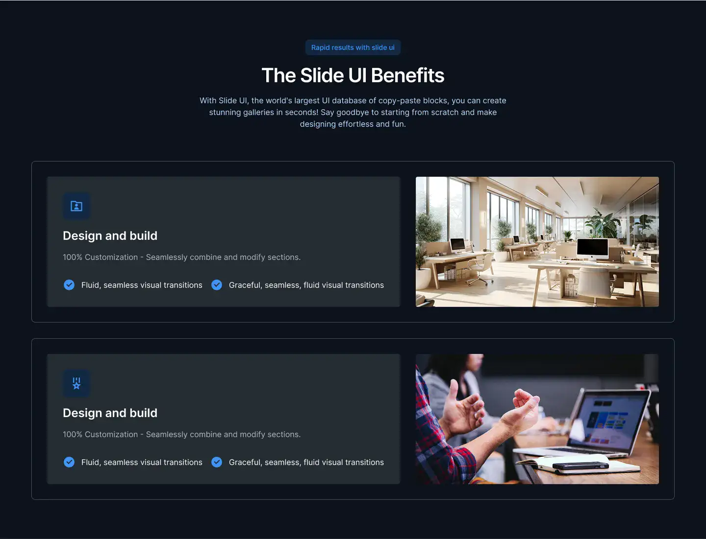Note:If you prefer SaaS, you can also check out our sister platform app.slideui.com, which offers yearly plans. But if you’re an avid Figma user, the Builder is a must-have — while SaaS can look shiny, nothing beats the speed and control of owning the files directly.
