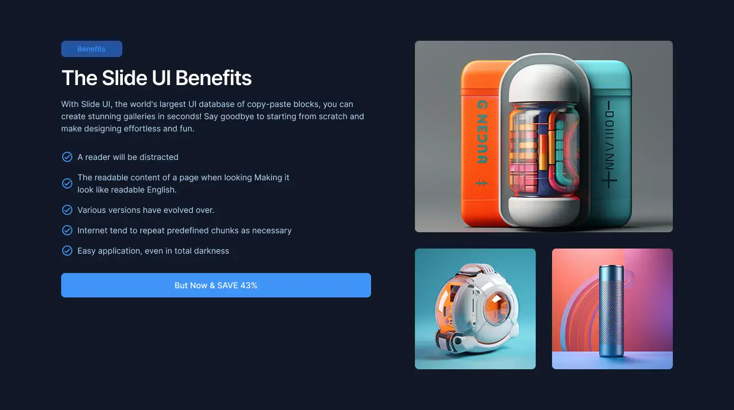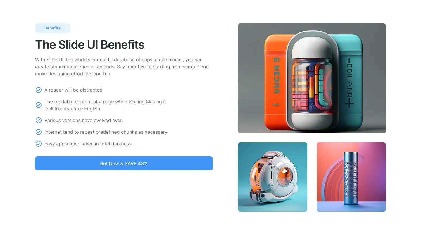 Grid or column-based layouts to highlight your best product features — fast, skimmable, and easy to reuse.