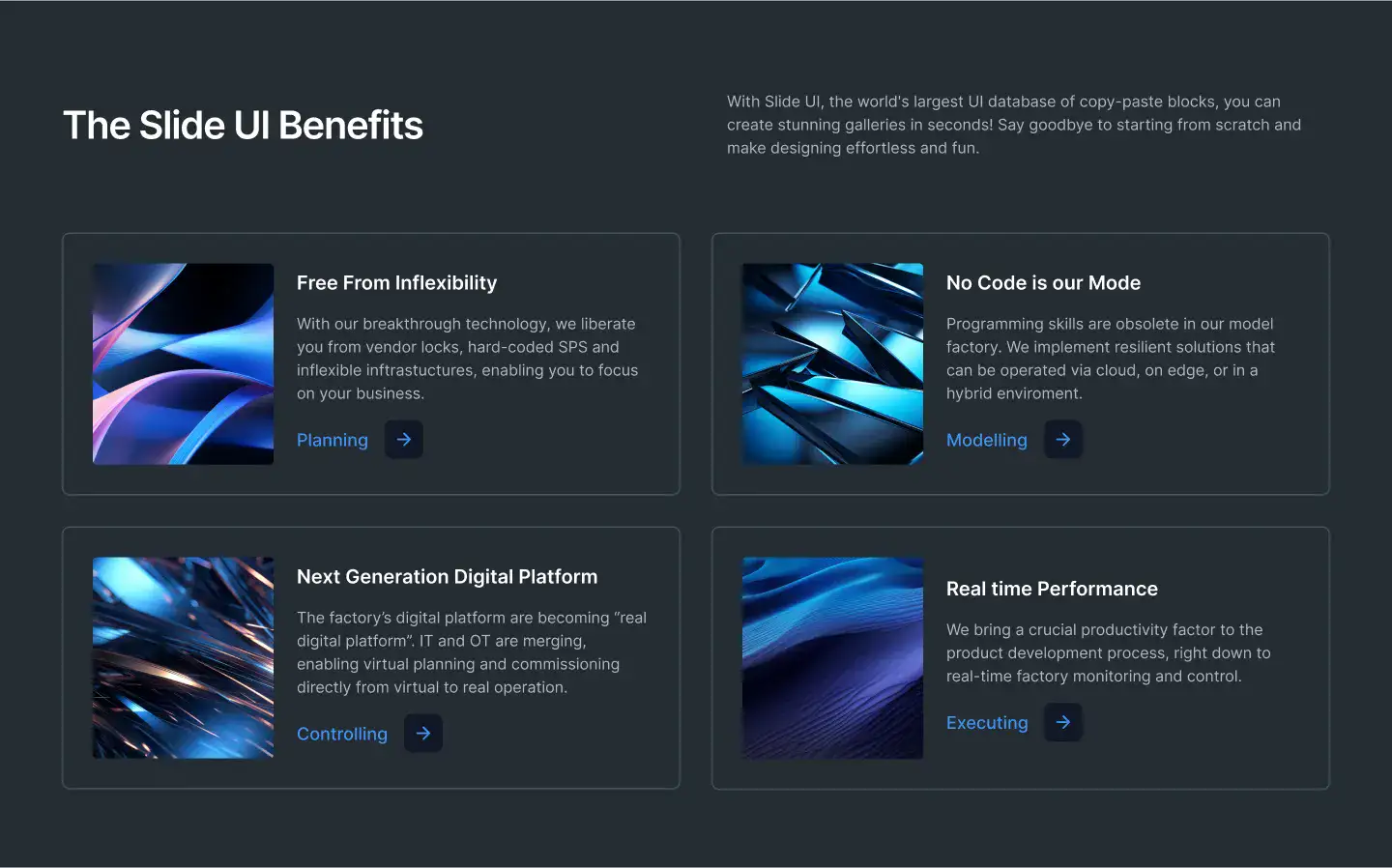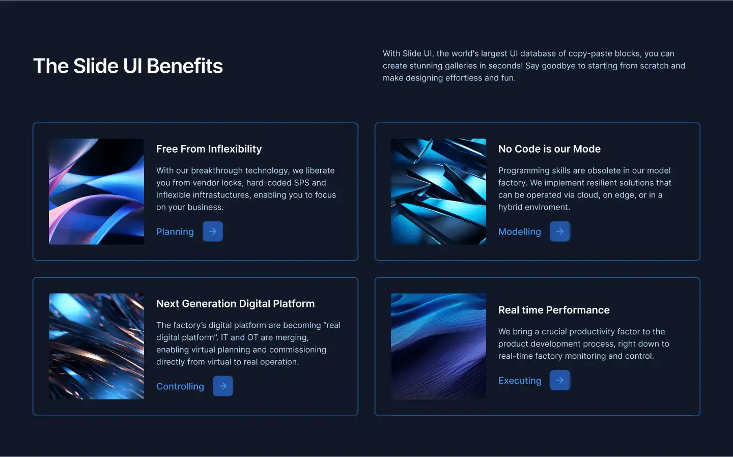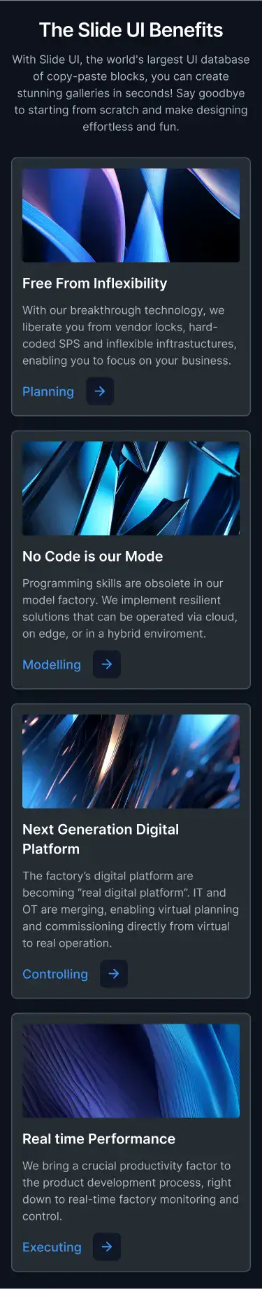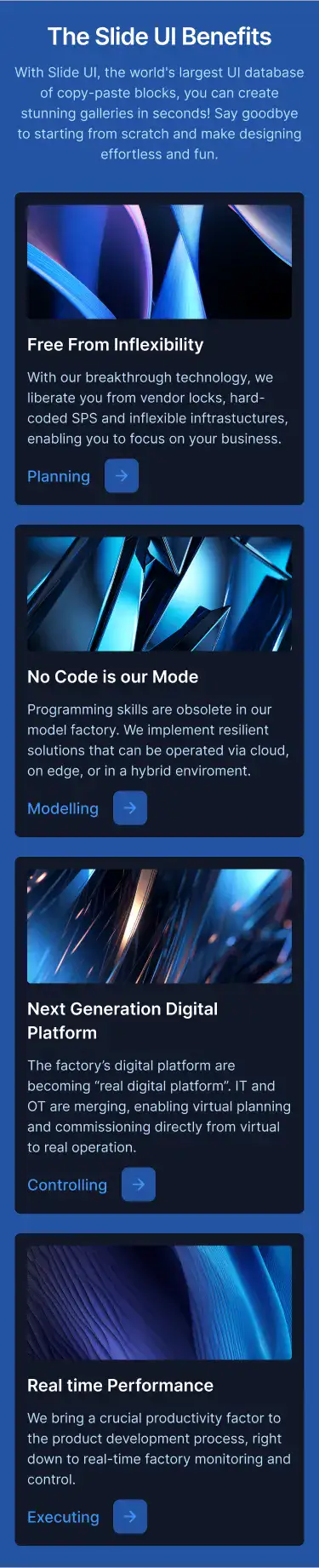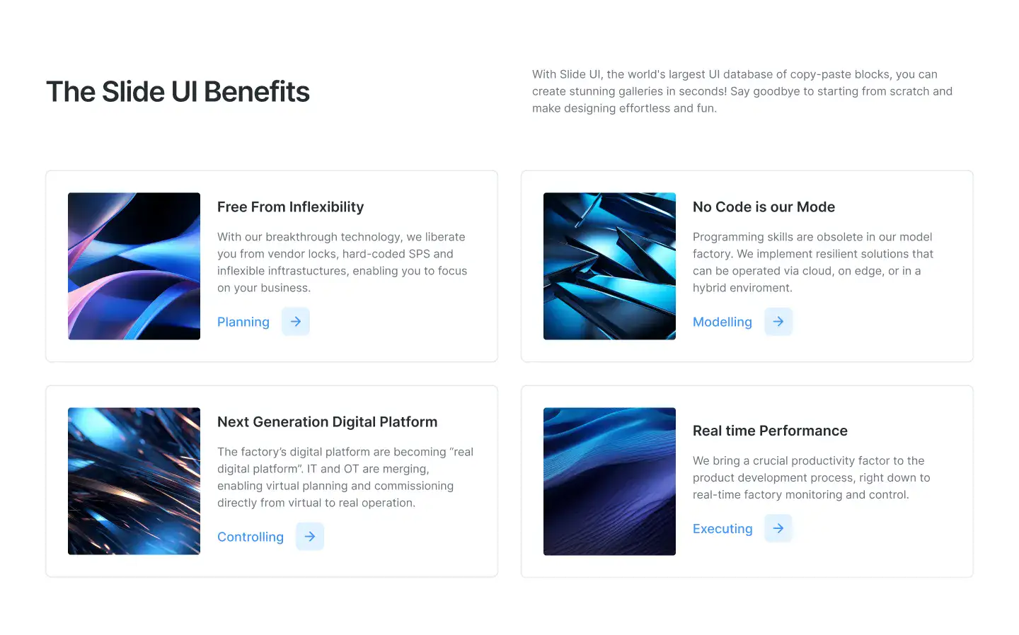 Grid or column-based layouts to highlight your best product features — fast, skimmable, and easy to reuse.