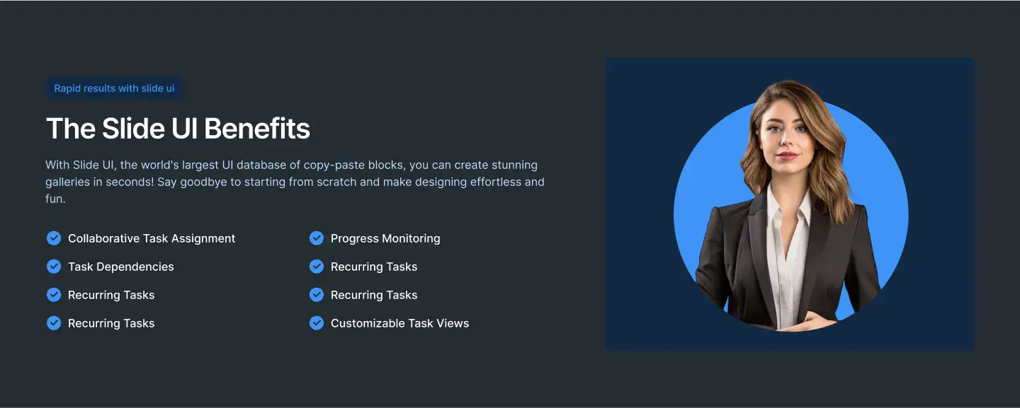 View Benefit / Statistic blocksPerfect for agencies, consultants, and SaaS tools to clearly explain services offered, with icon, card, or list formats.