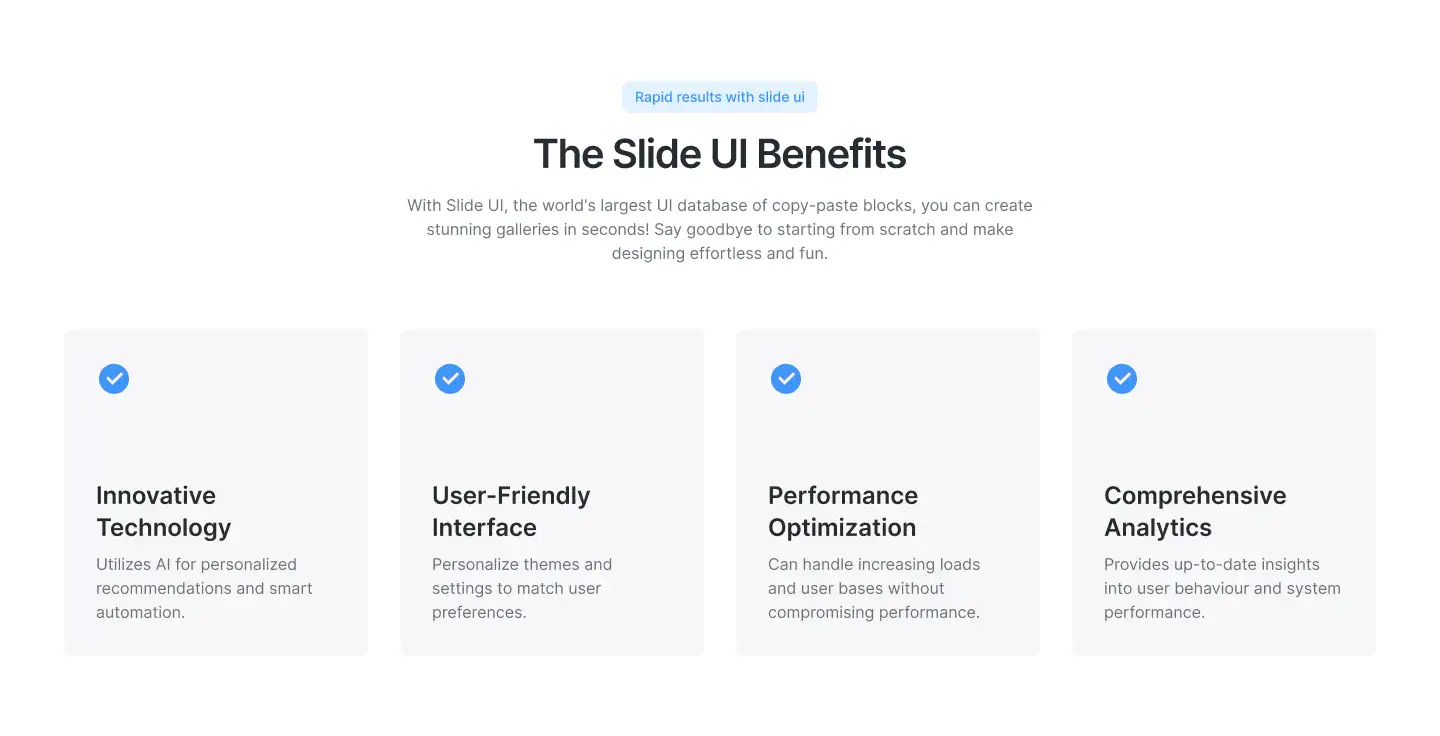 Grid or column-based layouts to highlight your best product features — fast, skimmable, and easy to reuse.