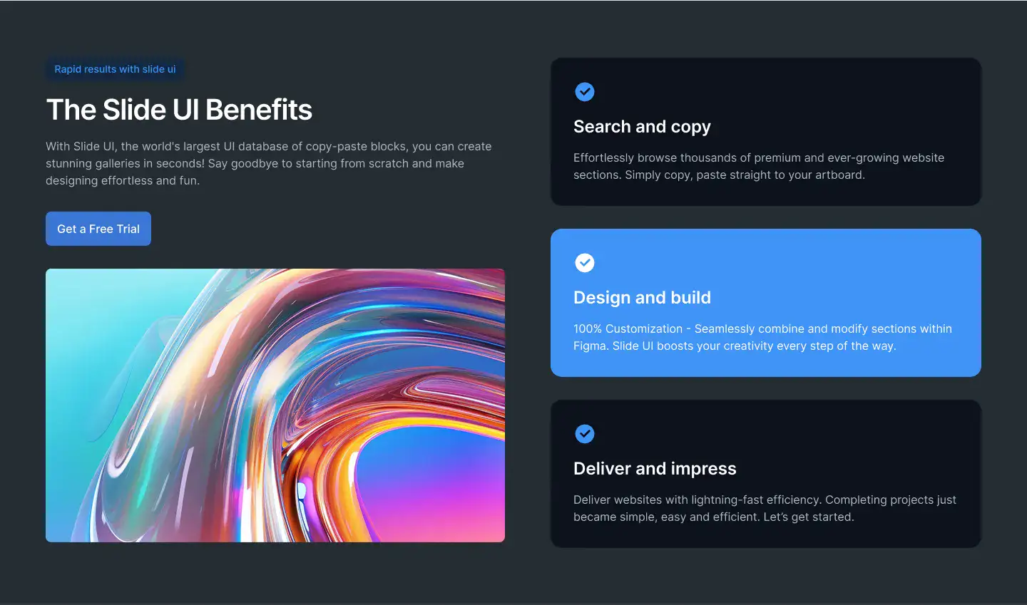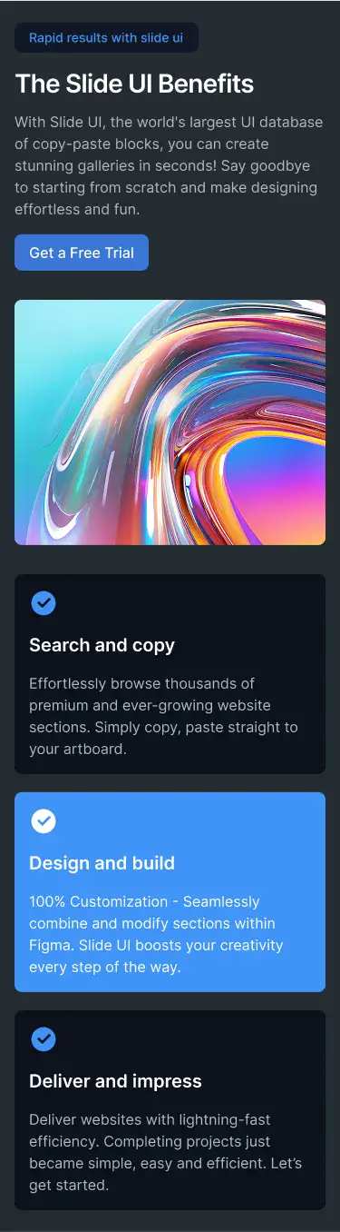 Note:If you prefer SaaS, you can also check out our sister platform app.slideui.com, which offers yearly plans. But if you’re an avid Figma user, the Builder is a must-have — while SaaS can look shiny, nothing beats the speed and control of owning the files directly.