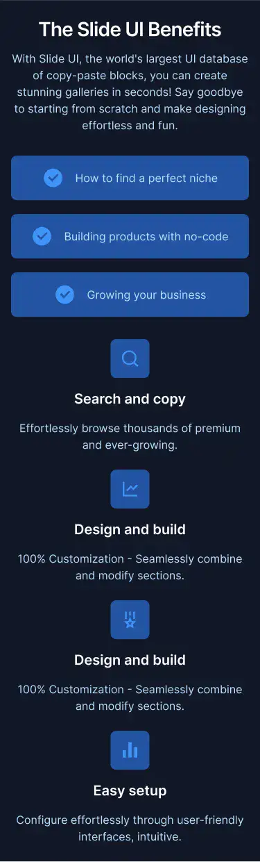 Grid or column-based layouts to highlight your best product features — fast, skimmable, and easy to reuse.