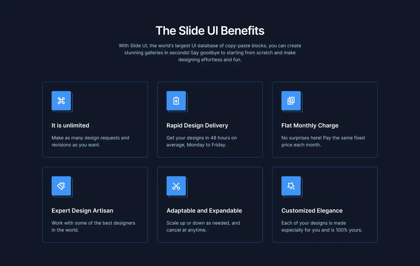 Grid or column-based layouts to highlight your best product features — fast, skimmable, and easy to reuse.