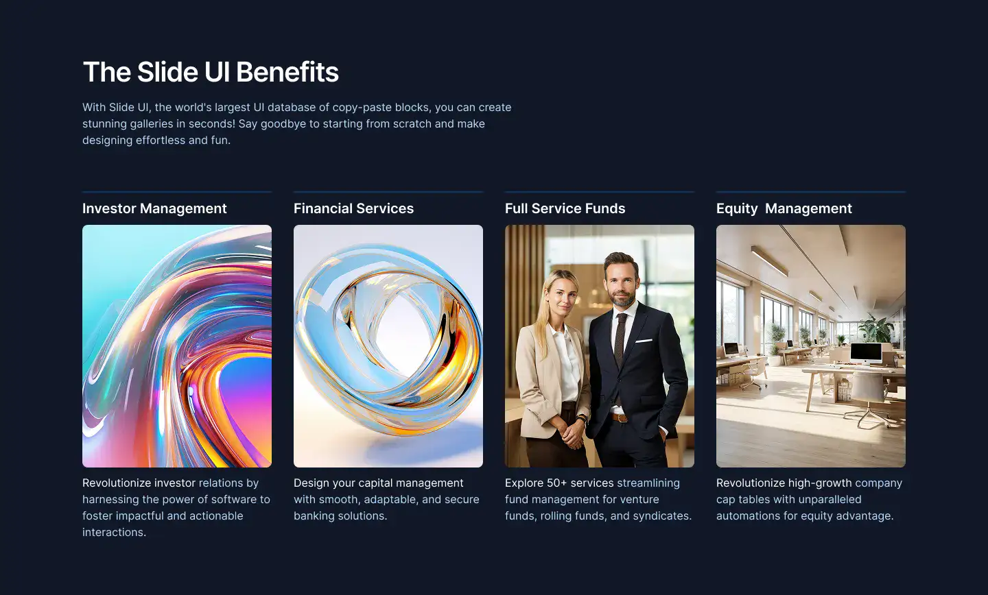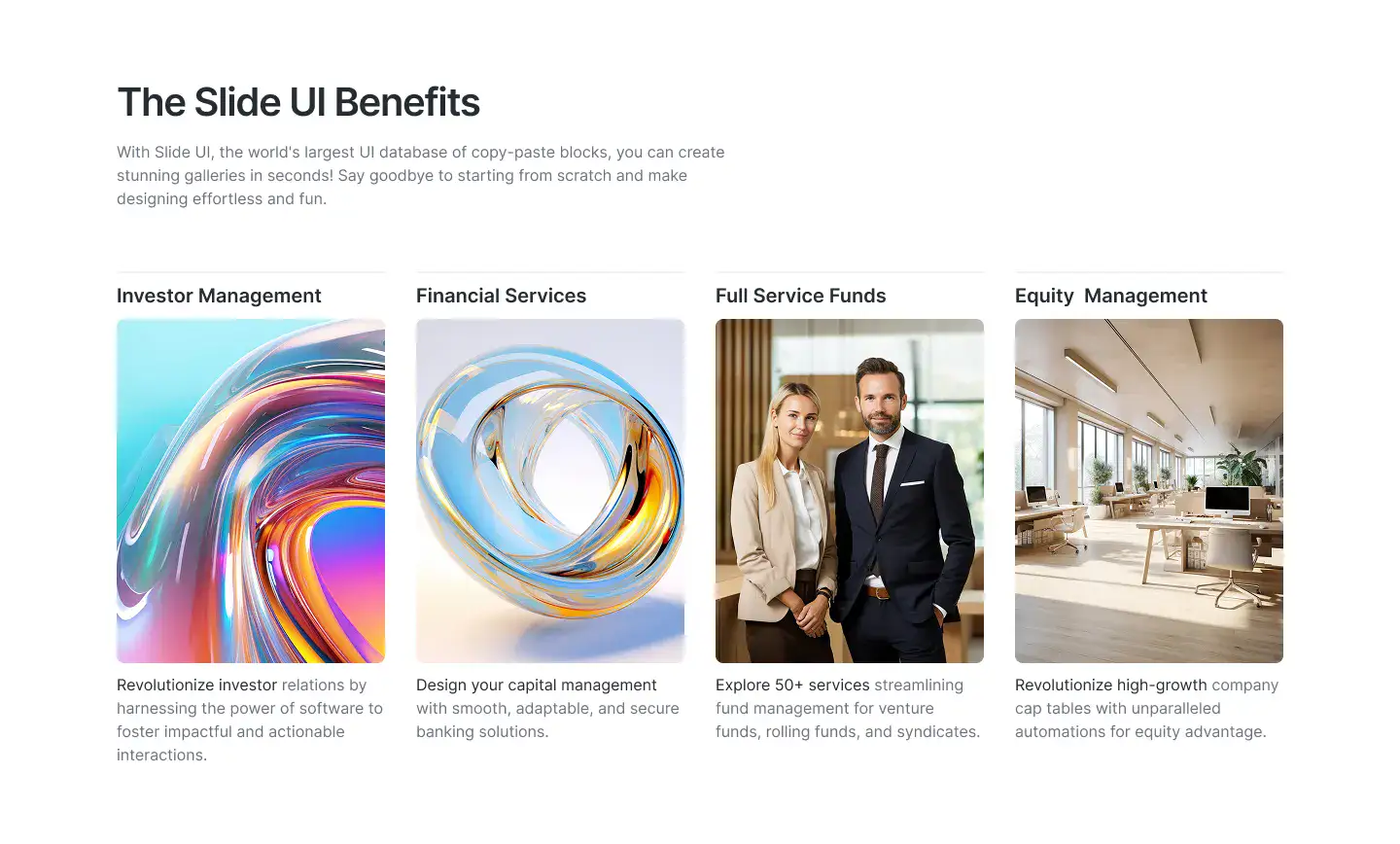 Grid or column-based layouts to highlight your best product features — fast, skimmable, and easy to reuse.