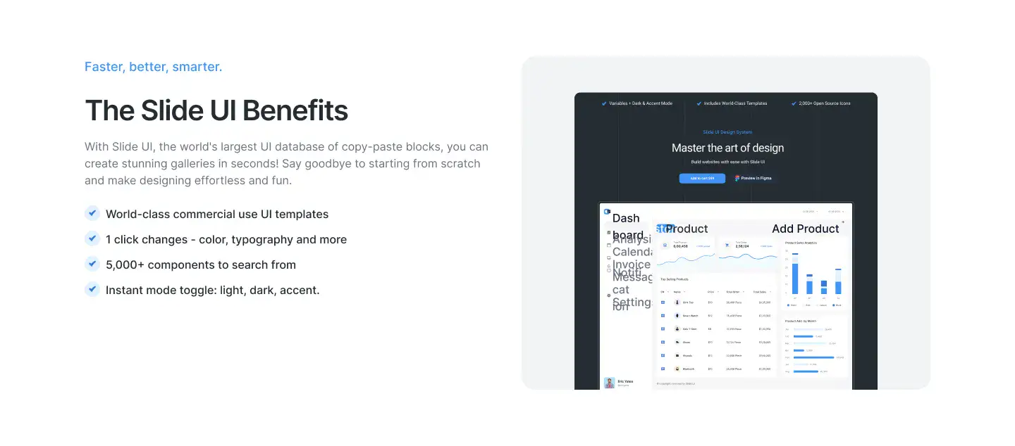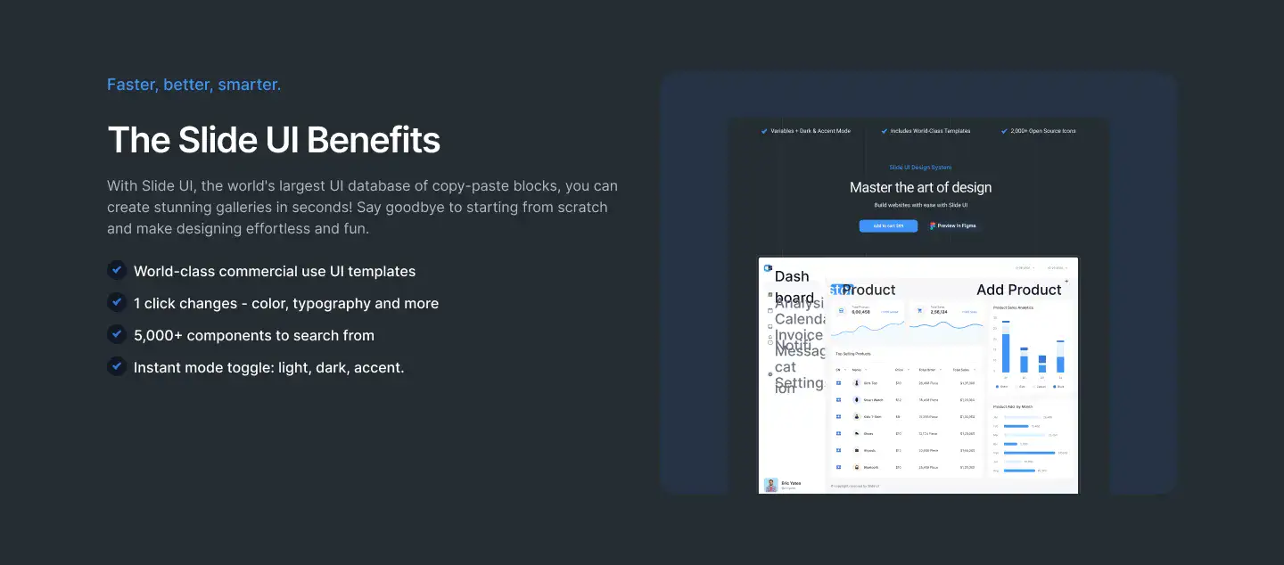 Note:If you prefer SaaS, you can also check out our sister platform app.slideui.com, which offers yearly plans. But if you’re an avid Figma user, the Builder is a must-have — while SaaS can look shiny, nothing beats the speed and control of owning the files directly.