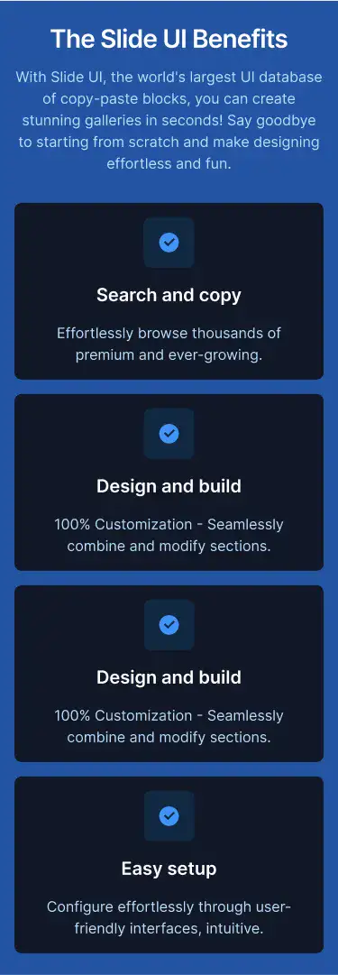Note:If you prefer SaaS, you can also check out our sister platform app.slideui.com, which offers yearly plans. But if you’re an avid Figma user, the Builder is a must-have — while SaaS can look shiny, nothing beats the speed and control of owning the files directly.