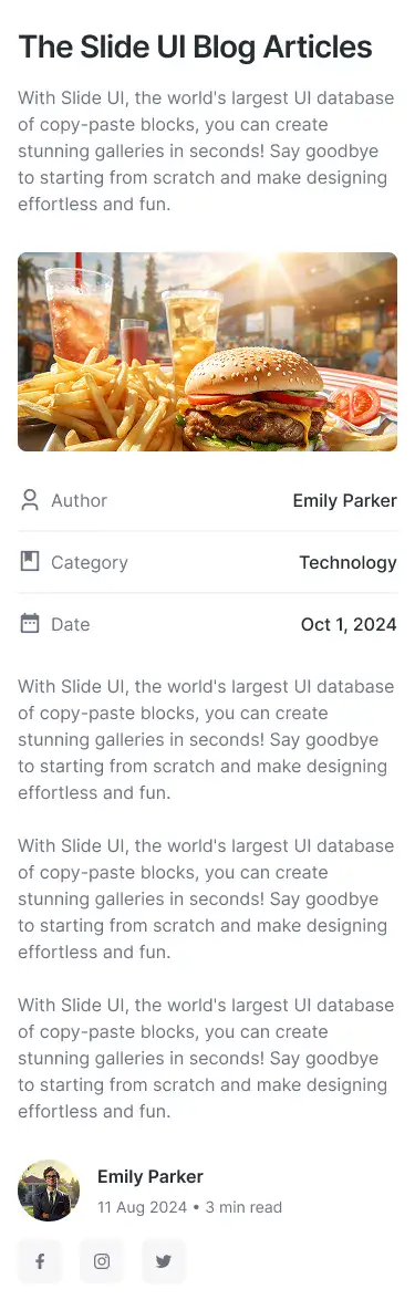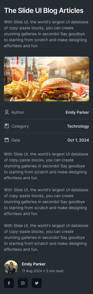 Blog Layout for Figma — clean, themeable and responsive across Desktop, Tablet and Mobile. Includes Light, Dark and Accent modes for fast customisation. Ideal for Ecommerce, Events, Real Estate.