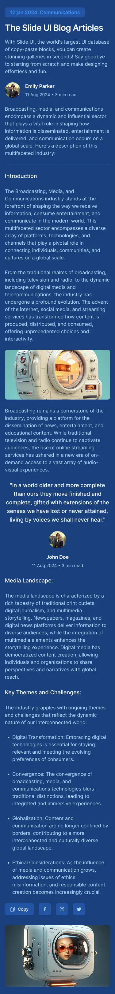 Blog Layout for Figma — clean, themeable and responsive across Desktop, Tablet and Mobile. Includes Light, Dark and Accent modes for fast customisation. Ideal for Events, Media, Tech.