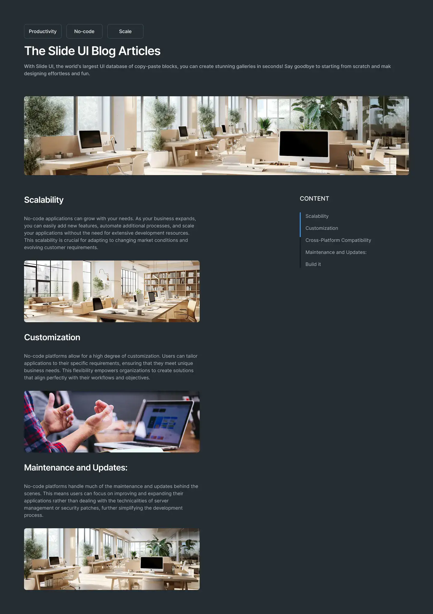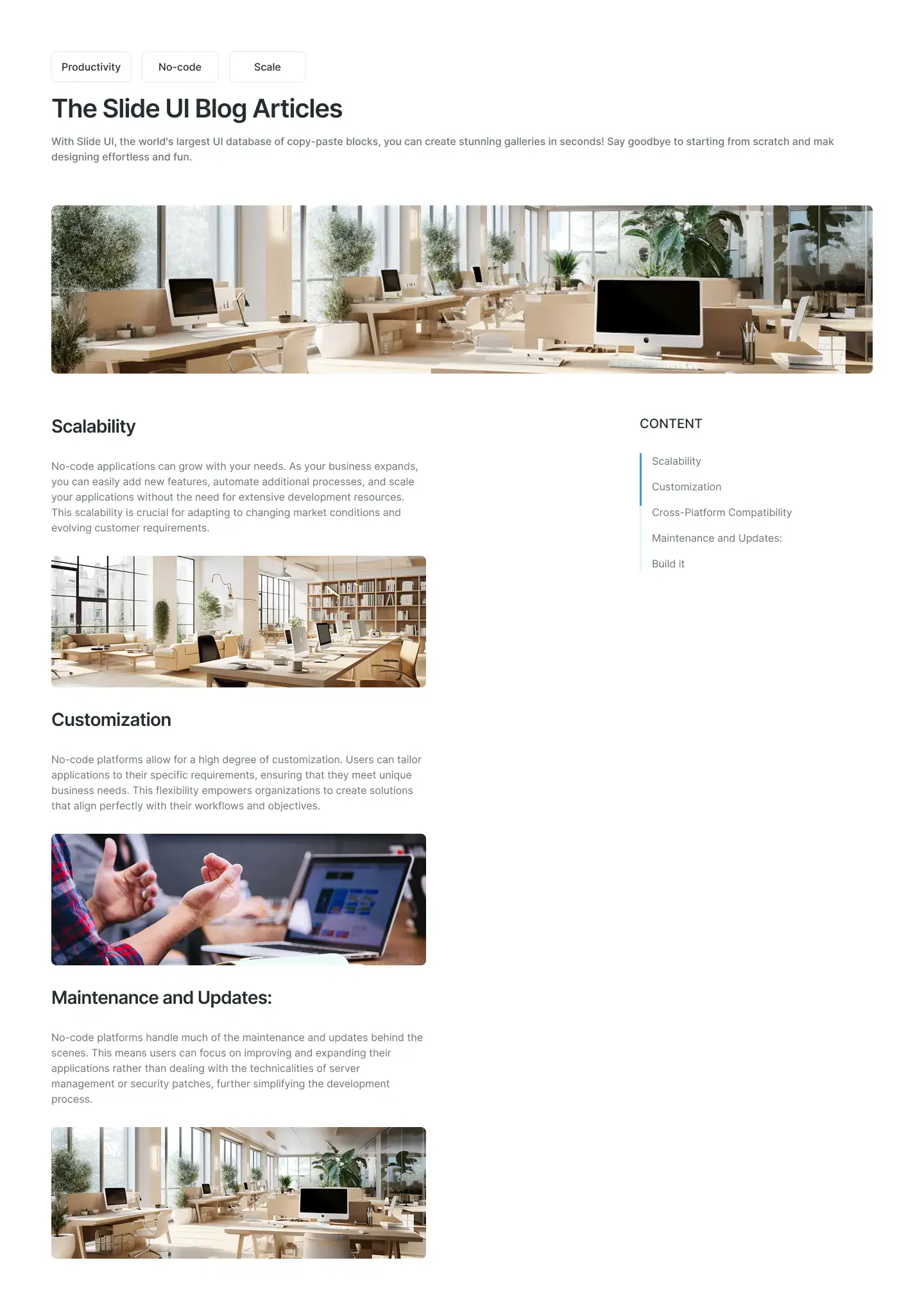 Organise your blog or knowledge base visually with clean, responsive category cards or grids.