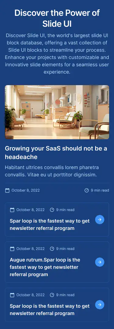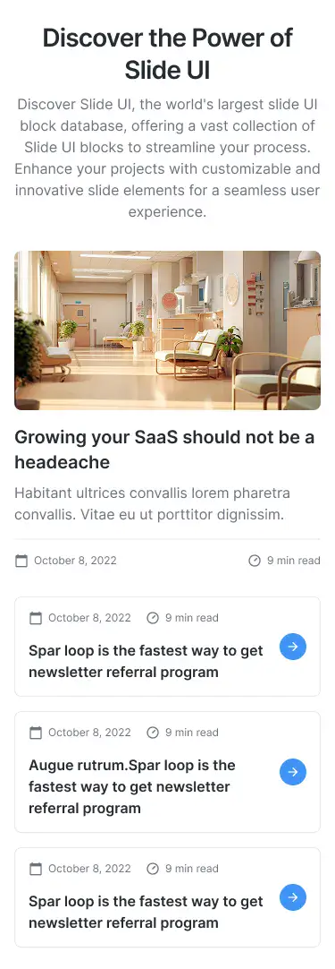 Display posts with preview cards, titles, and tags. Perfect for content hubs or design resource libraries.