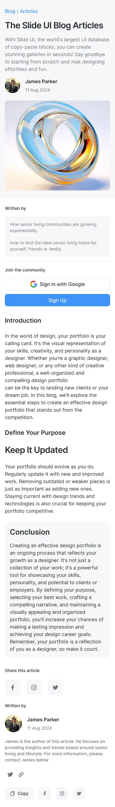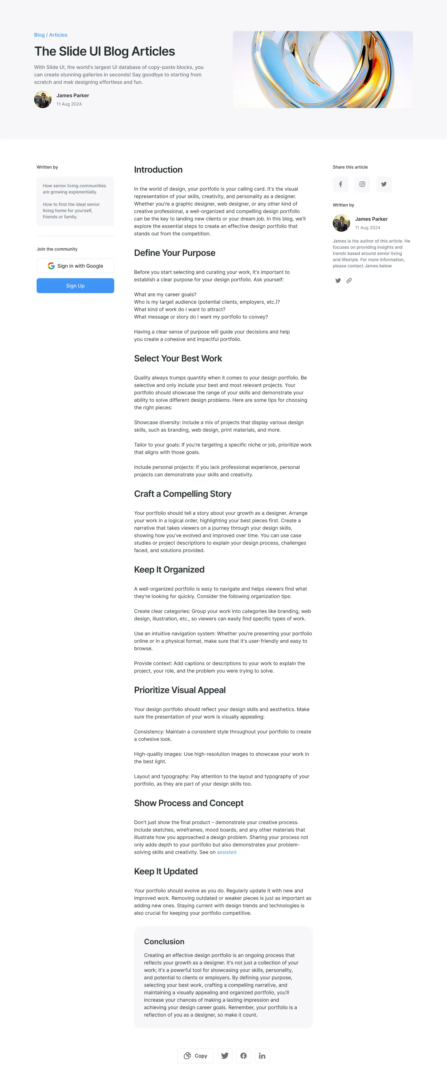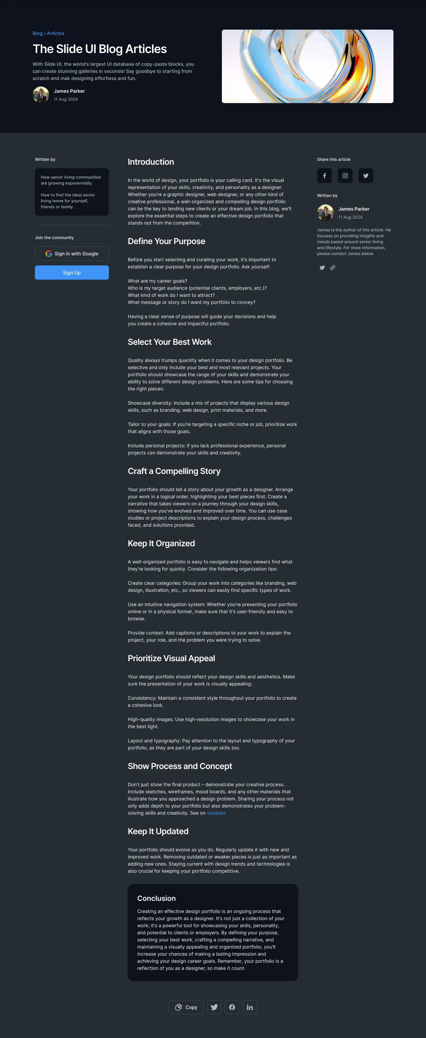 Display posts with preview cards, titles, and tags. Perfect for content hubs or design resource libraries.