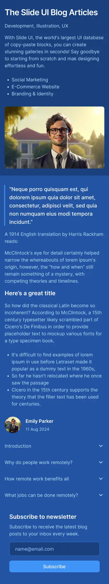 Lightweight sections for storytelling, intros, or visual breaks. Ideal for portfolios, agencies, and SaaS.