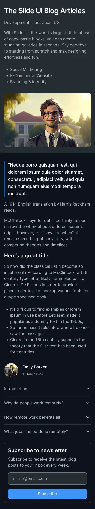 Blog Layout for Figma — modern, themeable and responsive across Desktop, Tablet and Mobile. Includes Light, Dark and Accent modes for fast customisation. Ideal for Automotive, Events, Finance.