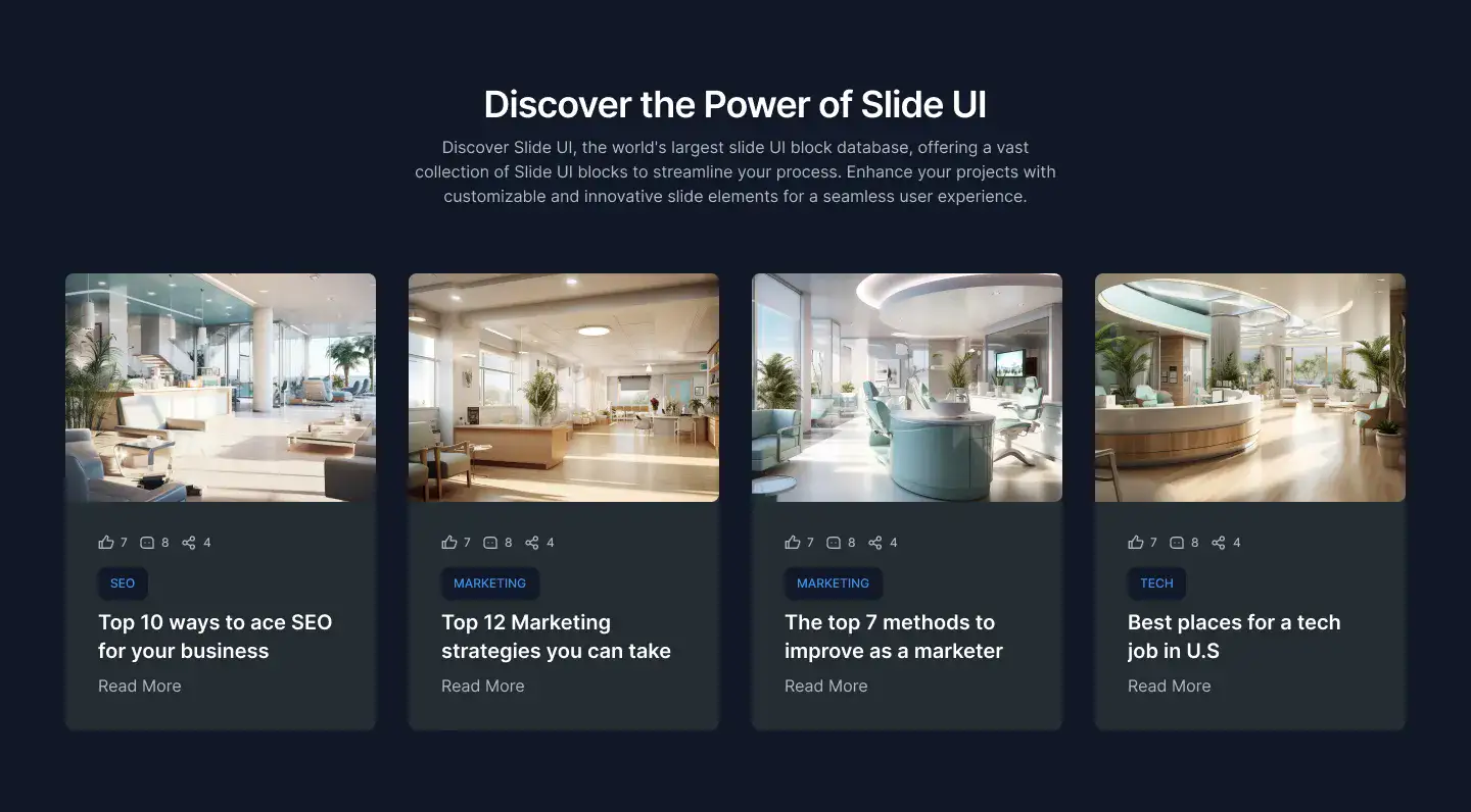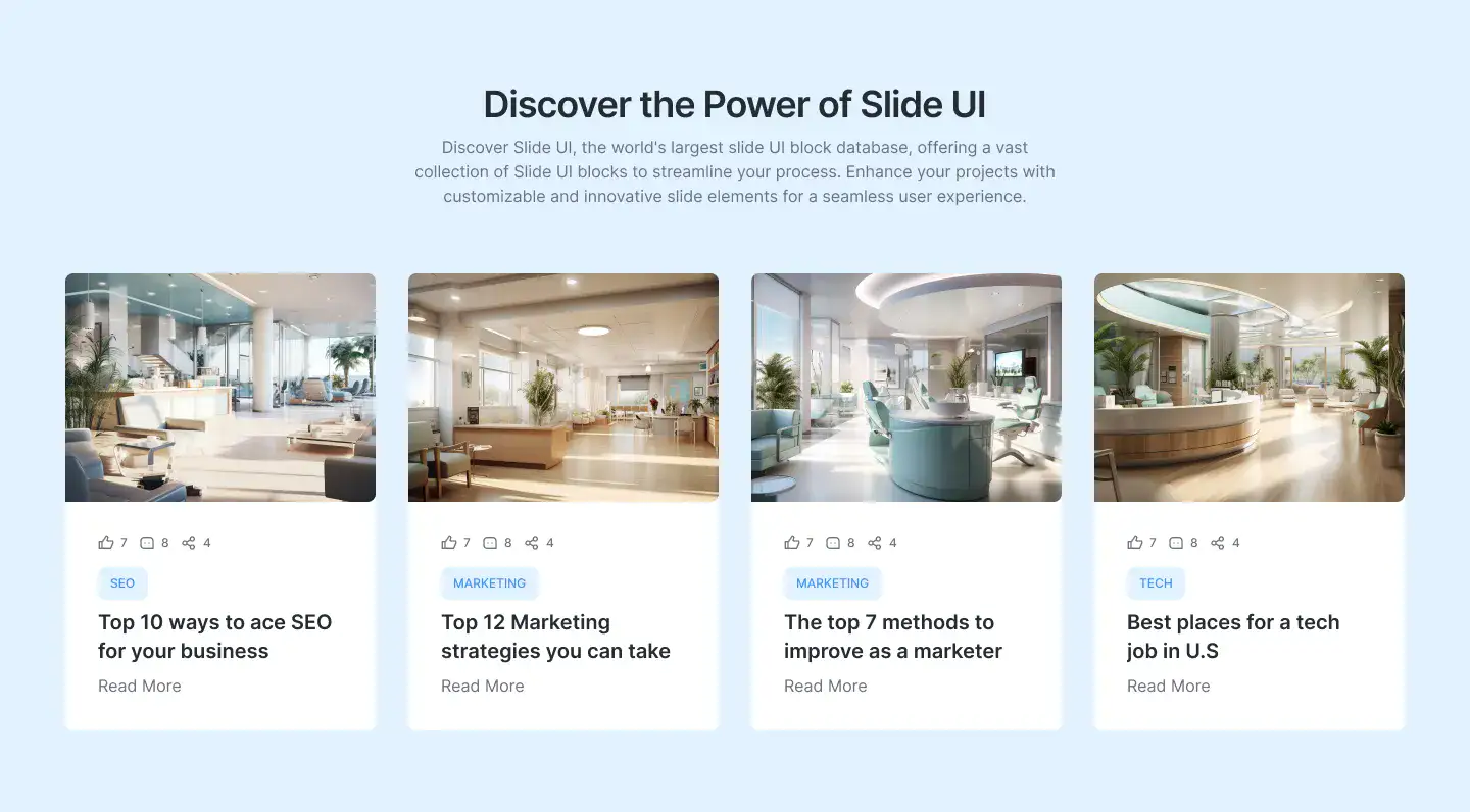Display posts with preview cards, titles, and tags. Perfect for content hubs or design resource libraries.