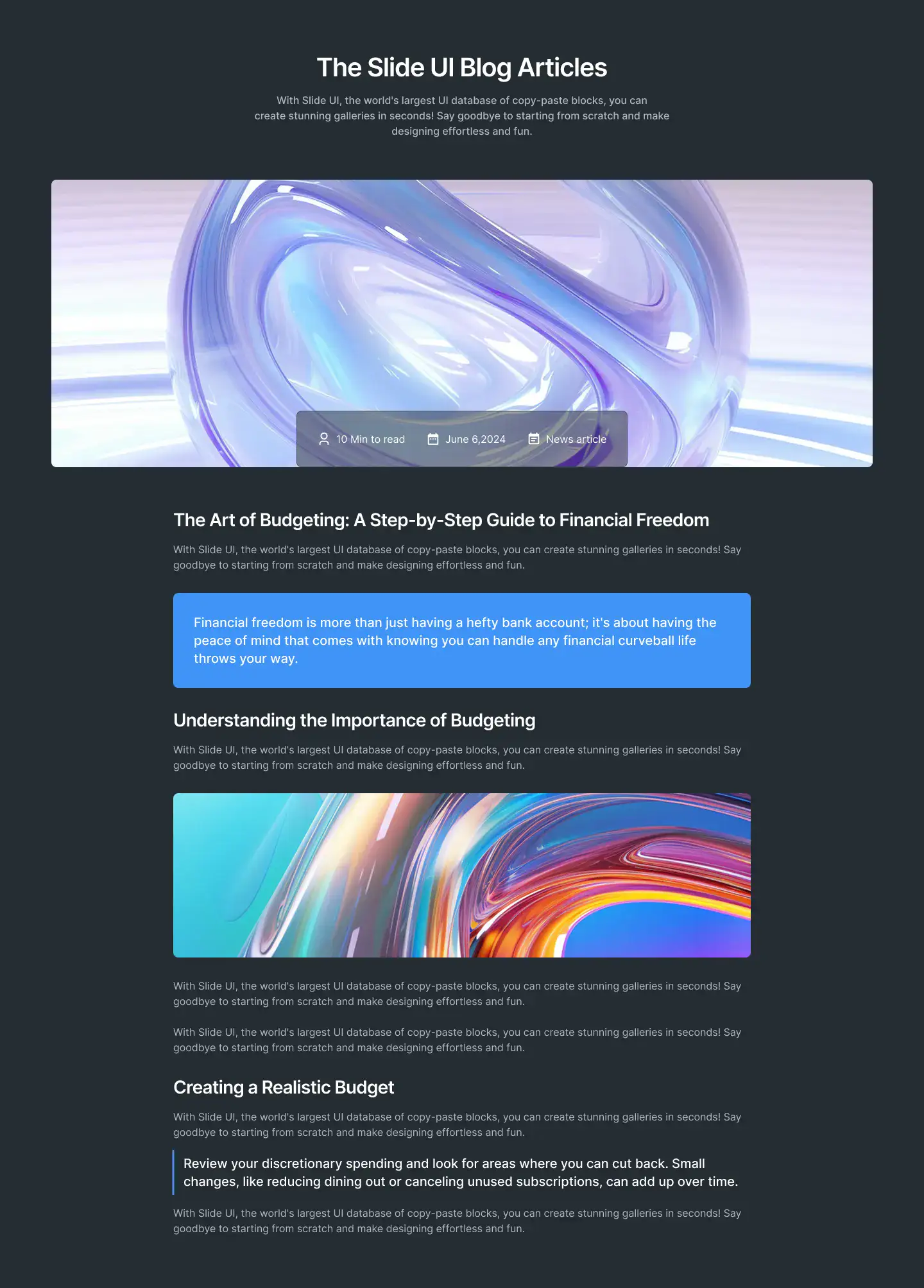 Blog Layout for Figma — swiss, themeable and responsive across Desktop, Tablet and Mobile. Includes Light, Dark and Accent modes for fast customisation. Ideal for Education, Energy, Hotel.