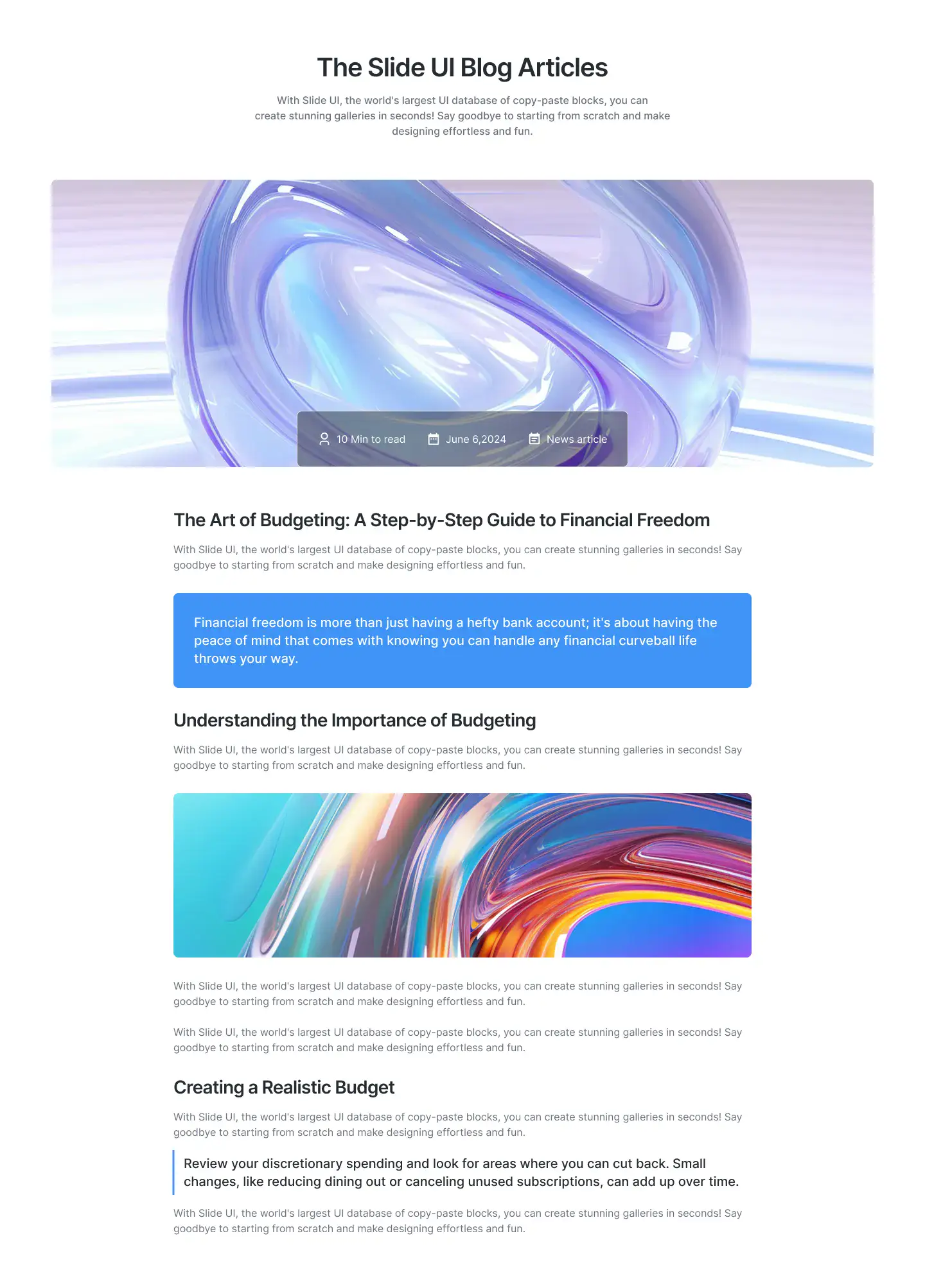 Display posts with preview cards, titles, and tags. Perfect for content hubs or design resource libraries.